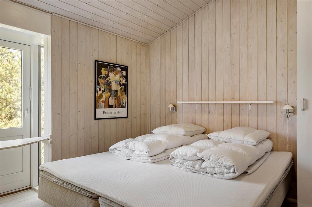 Vi præsenterer her et virkeligt skønt sommerhus, hvor man kan være op til 12 personer sammen. Den ene del af huset består af et stort og sammenhængende opholdsrum med åbent køkken. Rummet er badet i det flotte nordjyske lys, som strømmer ind ad de store vinduespartier, og her kan man samles til ludo omkring spisebordet eller til en god film i den store sofa; på en kold dag skaber det ekstra hygge at tænde op i brændeovnen, som står midt i rummet. Den anden del af huset er soveafdeling med seks værelser, som to og to hænger sammen med et badeværelse. Der er således mulighed for at være flere familier afsted sammen, eller at lave teenageafdeling for de lidt større børn. Ved trappen til hemsen er en lille legeafdeling, hvor de mindre børn kan finde bøger, spil, dukker og andet legetøj. Et dejligt, familievenligt sommerhus, som vil danne skønne og velfungerende rammer for mange ferier i det nordjyske.