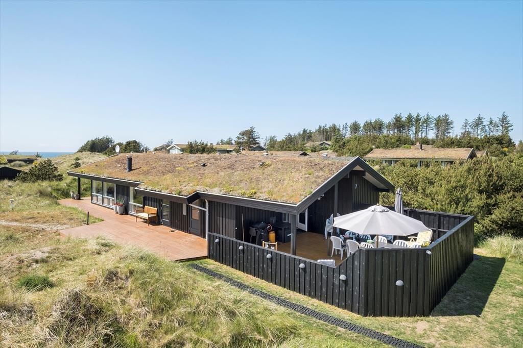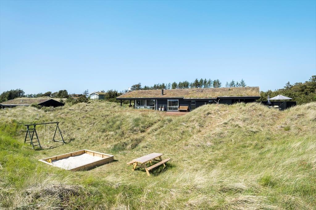 Sommerhuset ligger på en 4000m2 stor naturgrund med god udsigt til det fascinerende klitlandskab. På grunden er gynge og sandkasse til børnene og med terrasse på både øst, syd, og vestsiden af huset, skal der nok blive til mange gode udendørstimer med afslapning, solbadning og tilberedning af lækre grillmåltider.