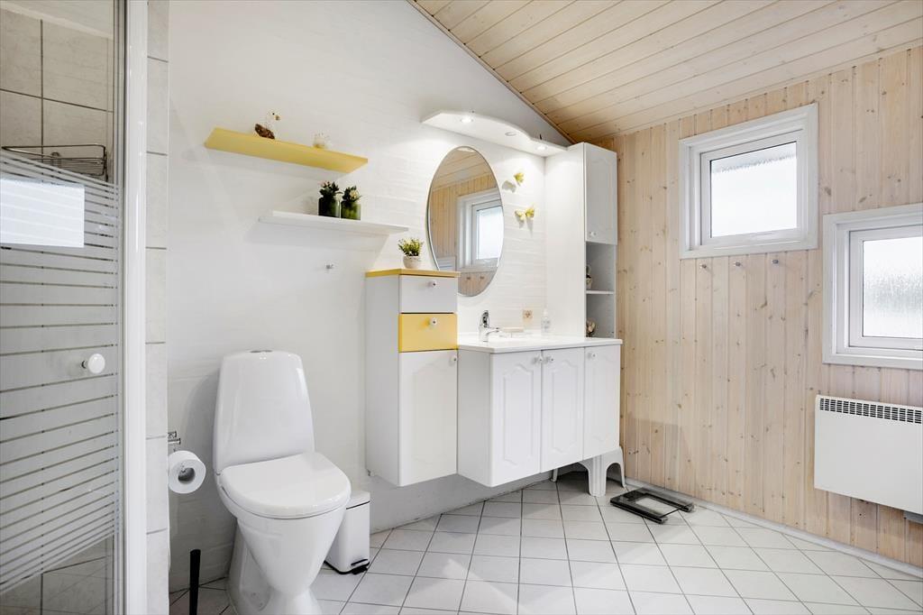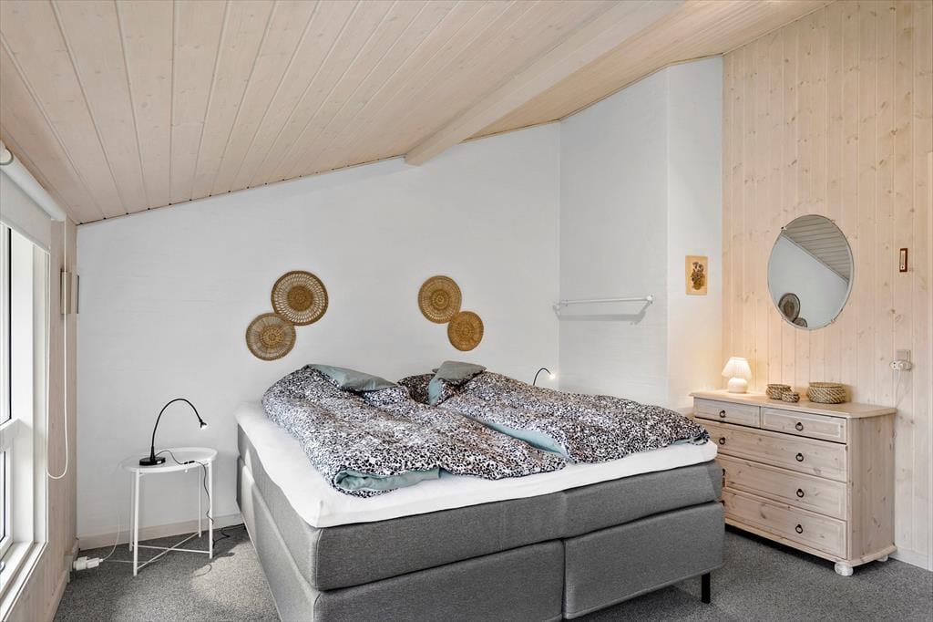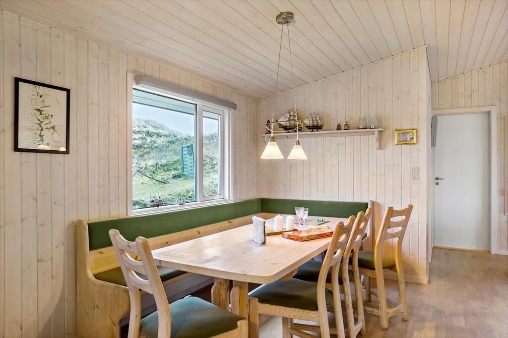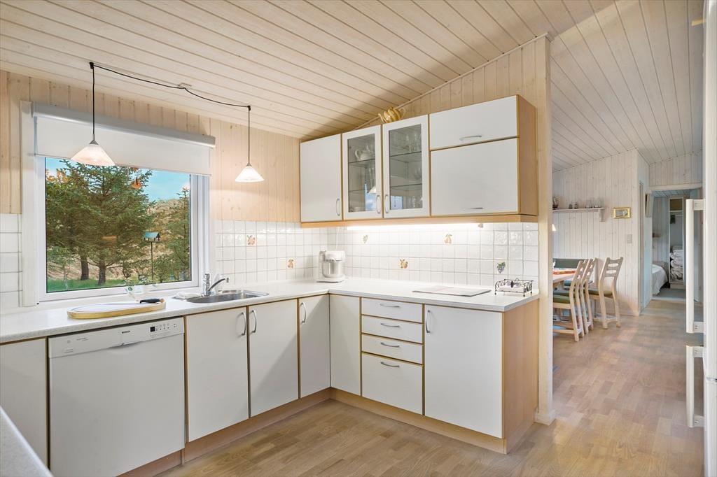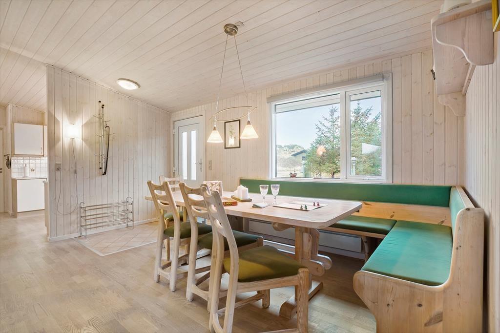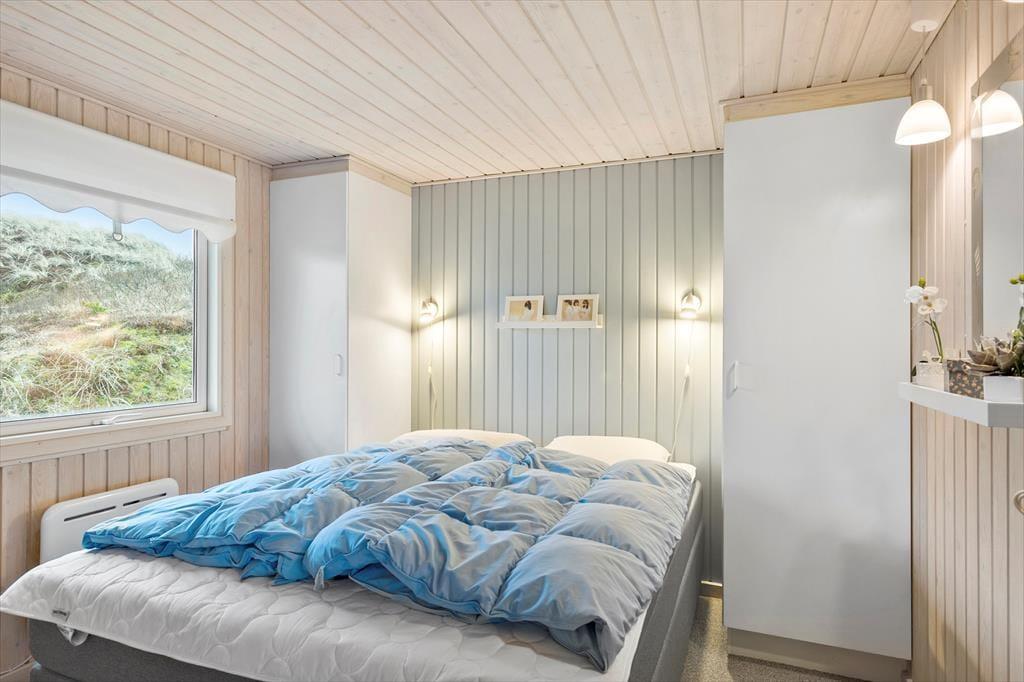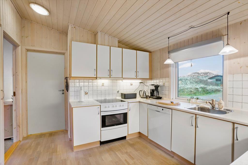 Saltums smukke natur bliver inviteret helt ind i stuen i dette særdeles rummelige og velindrettede sommerhus. Gennem husets vestvendte vinduer kan I se lige ud på klitterne, der står side om side som forvoksede muldvarpeskud, og hvis I går ud og op på den nærmeste klittop, kan I se ud over hele Jammerbugten. Sikke et sted at holde ferie!