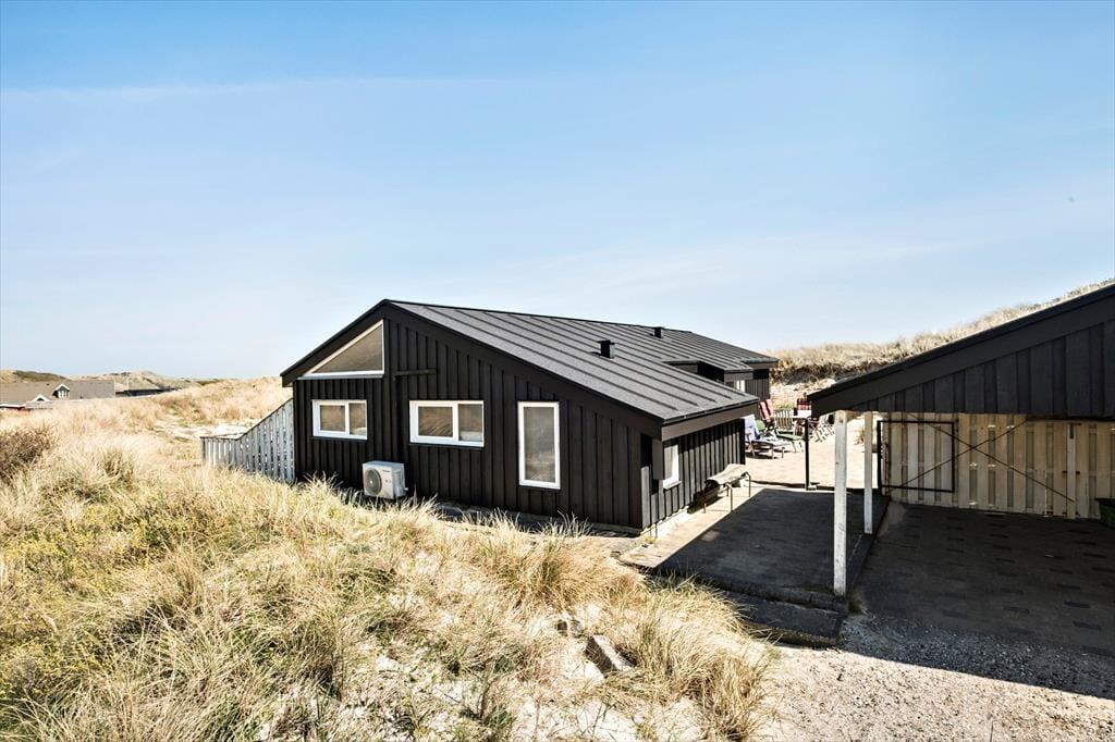 Sommerhusets 4220 m2 store klitgrund smelter sammen med det omkringliggende landskab, så I får fornemmelsen af at holde ferie i en gryde i klitterne. Omkring huset har I flere terrasser at vælge imellem, hvor I kan sole jer og spise sommerfrokost i ganske ugenerede omgivelser. Bilen kan parkeres i en carport ud mod den lille, lukkede vej.