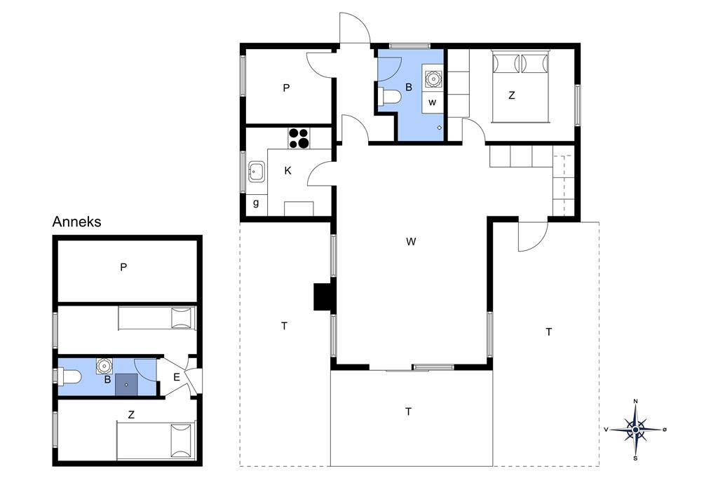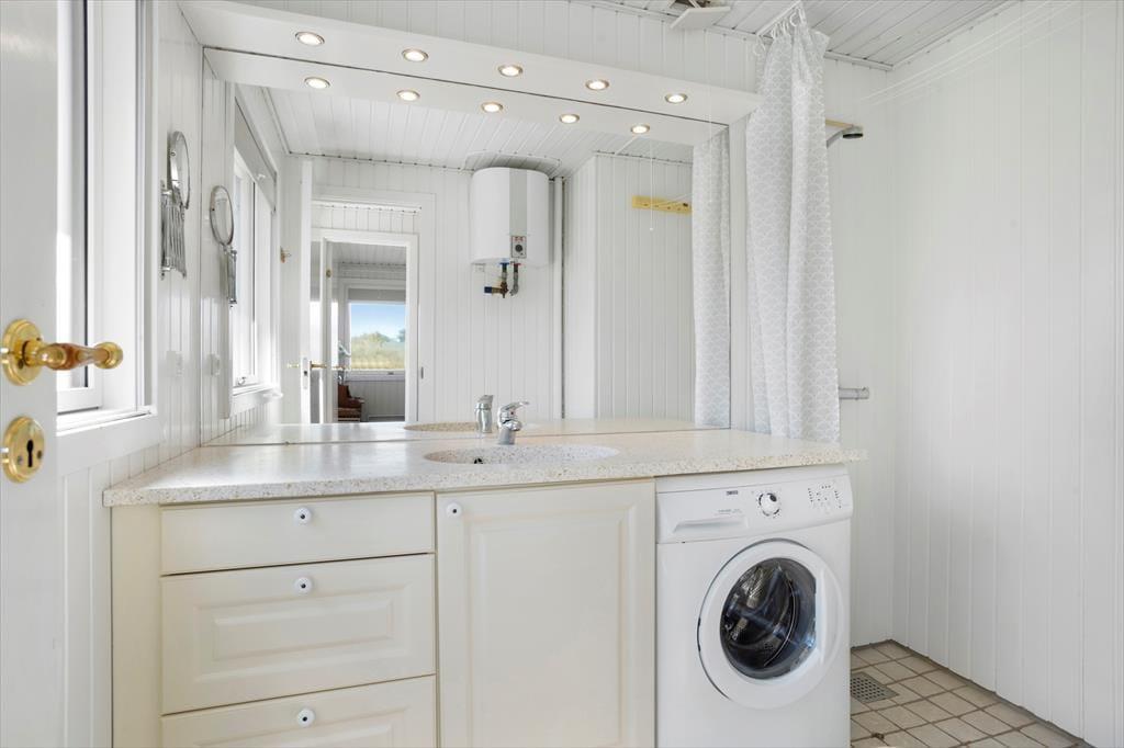 Her er der rigtig sommerhus-stemning for alle pengene. Huset består af to separate huse. I hovedhuset finder I en skøn stue og spise afdeling, hvorfra man kan nyde udsigten til klitplantagen. I et af de skønneste og mest attraktive områder i Saltum. Huset er hyggeligt indrettet og holdt i charmerende stil. Fra spiseafdelingen er der udgang til lækker vestvendt terrasse hvor et rigtigt godt vindspejl er med til at I kan nyde naturen, også selvom Vestenvinden skulle vise sig fra sin friske side. Køkkenet er forholdsvis nyt og som resten af huset holdt i en charmerende stil. Et hus man ikke kan undgår at blive lidt stil-mæssigt forelsket i. Trods den charmerende sommerhusstil finder I naturligvis de fleste moderne bekvemmeligheder såsom opvaskemaskine, vaskemaskine, parabol med skandinaviske og tyske kanaler, samt frit internet så tag endelig computer eller tablet med på ferien. Badeværelset er hyggeligt indrettet, igen i charmerende stil med bruser og toilet. Her finder I også husets vaskemaskine. I hovedhuset finder I soverummet med dobbeltseng. Derudover er der et ekstra værelse som er ejers private og ikke står til rådighed.