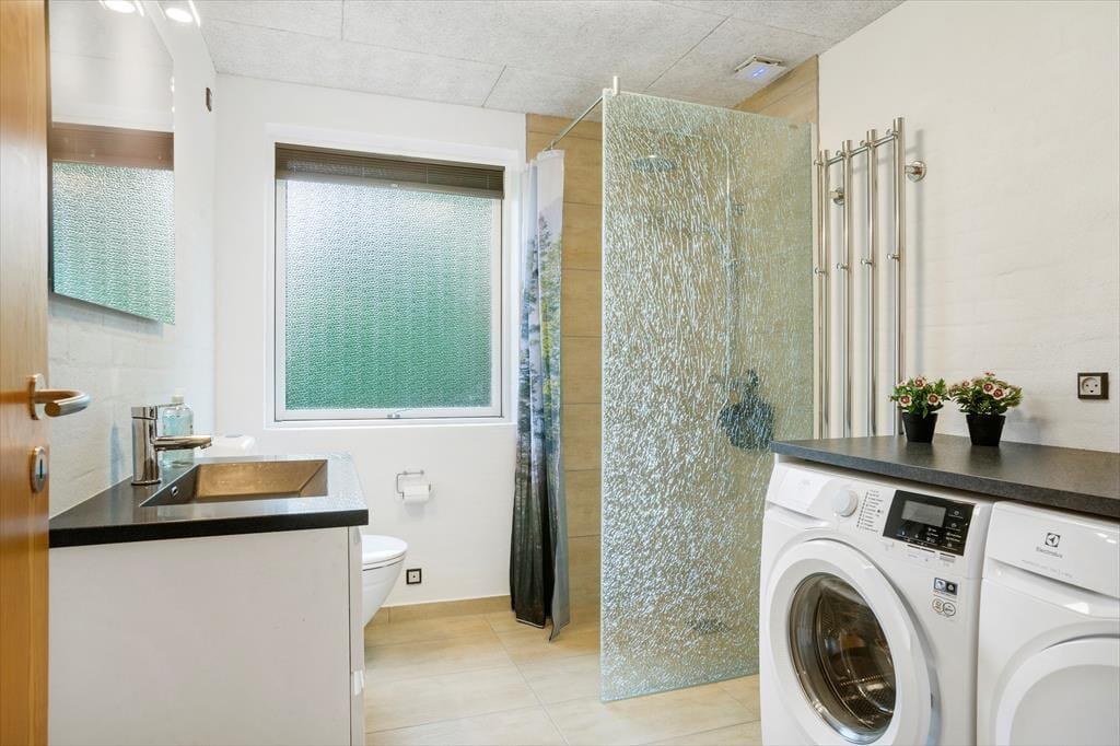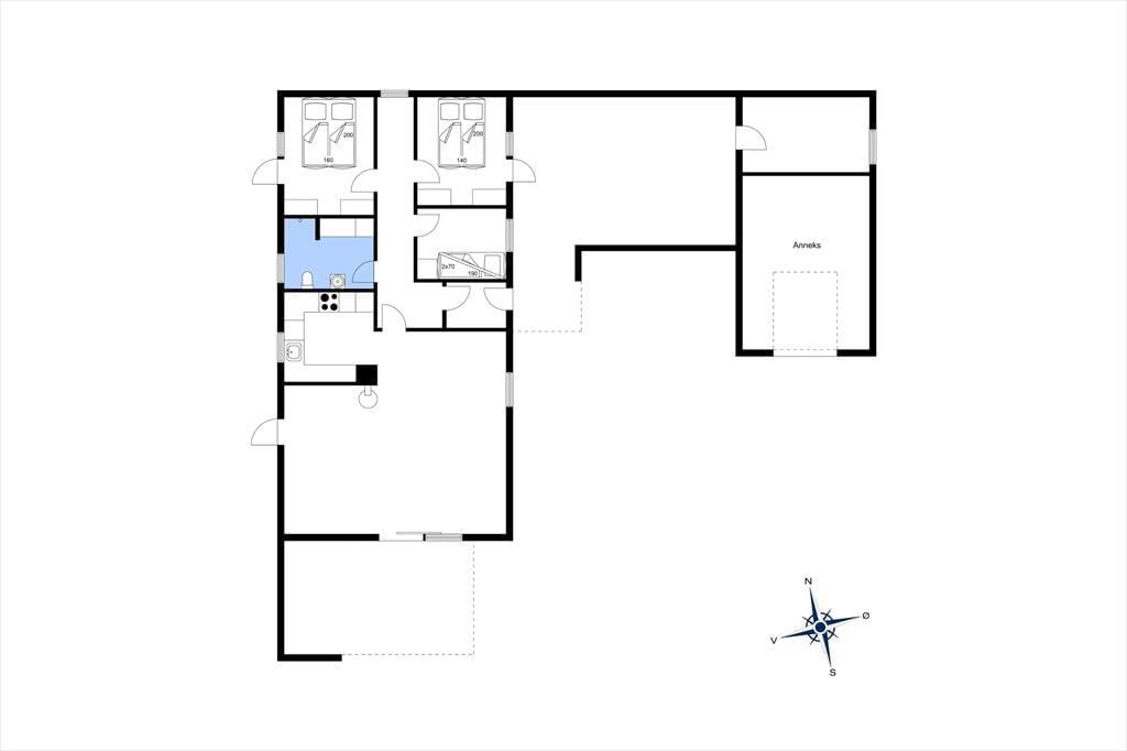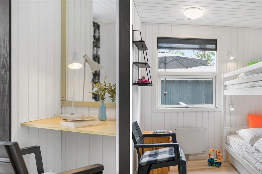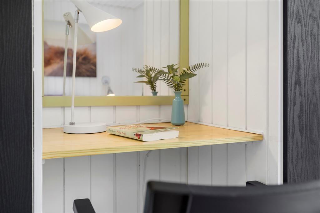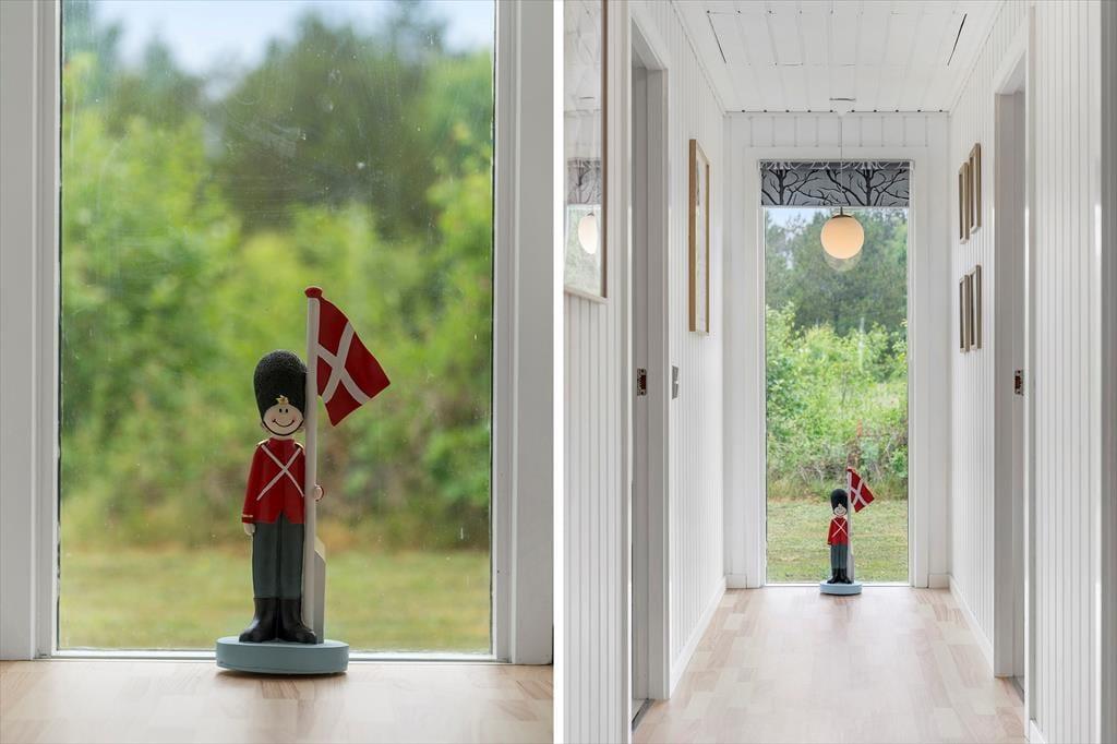 I 2022 blev sommerhuset shinet op både inde og ude, så det fremstår lyst og venligt overalt. Det fungerer i dag som en skøn base for familieferien – og med tre soveværelser, hvoraf det ene er med køjeseng og de to andre med dobbeltseng, kan det endda være, at I har mulighed for at invitere bedsteforældrene med. Det rummelige badeværelse er udstyret med en rummelig bruseniche foruden vaskemaskine og tørretumbler, og et u-formet køkken med blandt andet opvaskemaskine og komfur ligger i åben forbindelse med husets dejlige stue. Alt efter årstiden kan I tænde op i brændeovnen, inden I finder brætspil og snacks frem og gør klar til en rolig eftermiddag i sofaafdelingen.