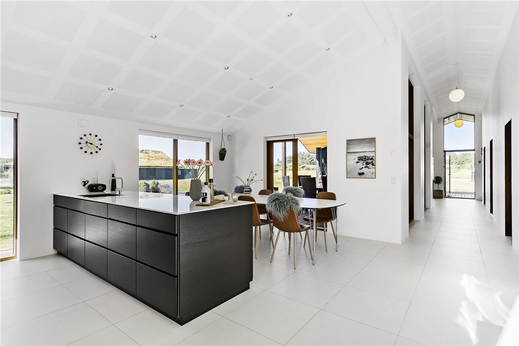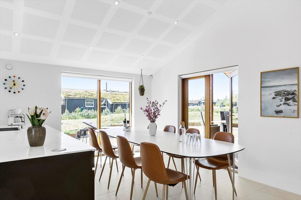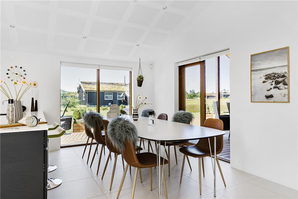 Et lyst og indbydende sommerhus med en dejlig afslappende atmosfære: her kan hele familien komme helt ned i gear og lade op til hverdagens høje tempo igen. Huset er indrettet med en gang der går gennem huset hvorfra der er adgang til alle husets rum. Gangen er i åben forbindelse med køkken og spiseplads der går ud i et. 3 gode værelser, de to med dobbeltsenge og det sidste med enkeltsenge. Fra gangen er der ligeledes adgang til den store stue hvor man kan sidde og nyde udsigten over grunden. Køkkenet er moderne indrettet med alt i hårde hvidevarer, og den samme stil går igen i husets to badeværelser. Begge med bruser, så der aldrig behøver at være kø om morgenen. De store vinduespartier lukker det skønne nordjyske lys helt ind og i stuen er det dejligt at sidde om aftenen og nyde en god bog. Eller følg med i vejrudsigten eller oplevelserne i området via husets internetforbindelse. Bare husk at medbring PC eller tablet på ferien. Hunde er naturligvis også velkomne, så her er virkelig de perfekte rammer for en ferie i det nordjyske for alle familiens medlemmer. Både store, små og 4 benene