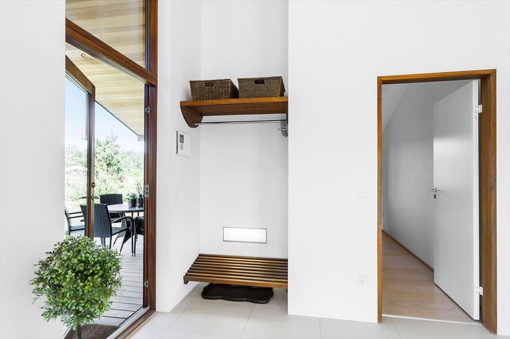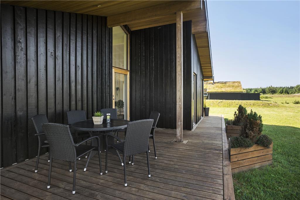 Huset ligger på en fantastisk grund med god plads til at lege og løbe rundt på den store græsplæne. Der er både gynge, sandkasse og legetårn til rådighed for sommerhusets mindste gæster. Fra både stuen og spisestuen er der adgang til den store terrasse, hvoraf en del er overdækket. Her kan man virkelig nyde dagens første kop kaffe i morgensolen. Eller nyde de lange lyse sommeraftenener med grillmad og et godt glas vin mens man nyder aftensolen. Liggestole, grill og havemøbler er naturligvis til rådighed. På den anden side af huset forefindes ligeledes en overdækket terrasse. Grunden er omgivet af høje træer på den ene side. Så leder man efter et sommerhus af høj klasse der oser af hygge, og god stemning er man kommet til det helt rette sted.