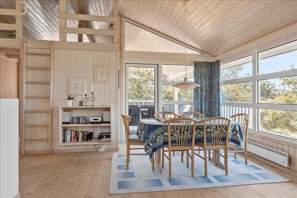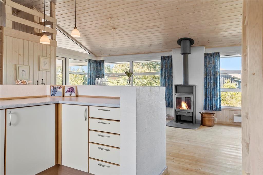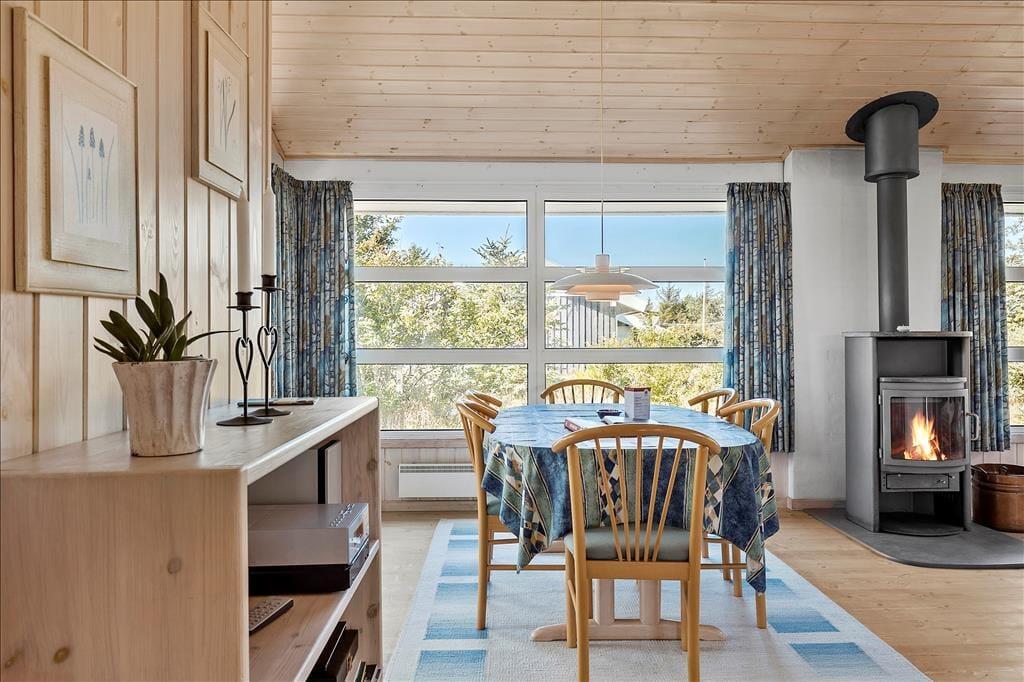 Velkommen til et flot og præsentabelt sommerhus med smagfuld indretning og plads til en stor familie eller ideelt til par, som ønsker høj kvalitet i skønne omgivelser. Her er alle m2 godt udnyttet, møblerne er af god kvalitet og med alle mulige tekniske hjælpemidler til rådighed, kan I bruge tiden på at slappe af og nyde de smukke omgivelser. Sommerhusets centrale rum er det åbne køkken med direkte adgang til opholdsrummet. Her kan I mødes omkring måltiderne og hygge med spil og tv eller tænde op i brændeovnen og logge på det trådløse internet, hvis vejret mest indbyder til indendørsaktiviteter. Derudover råder sommerhuset over tre gode soveværelser med nye madrasser, en hems med to madrasser og to badeværelser, hvoraf det ene har spabad, sauna, vaskemaskine og tørretumbler, hvilket er meget praktisk, når I bor så tæt på Vesterhavet. Alt i alt meget velfungerende rammer for enhver ferie i Nordjyllands skønneste ferieområde.