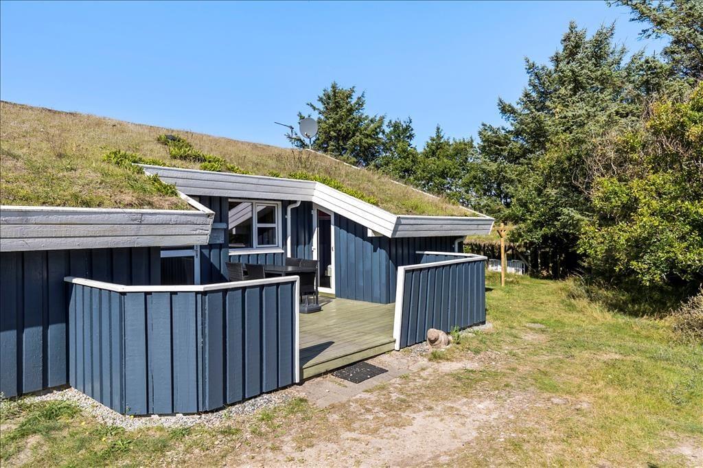 Sommerhuset ligger i et smukt klitområde, hvilket også afspejles i beplantningen på den store naturgrund. På østsiden ligger en lille terrasse ved entreen, mens I på vestsiden kan færdes helt ugeneret på den store og delvist overdækkede terrasse med udgang fra stuen. Også børnene vil få nogle gode timer her i sandkassen og i gyngerne.