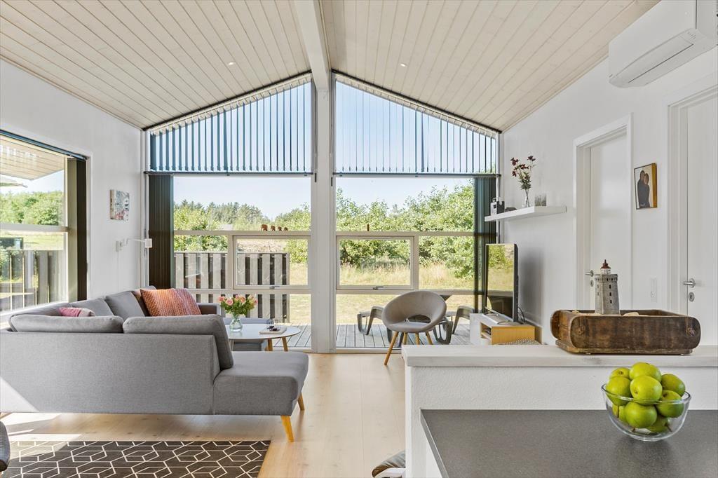 Overalt i huset oser det af behagelig komfort og god stil. Stuen er ud i et med køkkenet, og her er der alt i moderne bekvemmeligheder og hårde hvidevarer. I stuen er der store vinduespartier og loft til kip. Dette lader masser af det skønne nordjyske lys ind. Fra stuen er der ligeledes udgang til den ene af husets dejlige terrasser. Der er entre så man har mulighed for at hænge sit overtøj og stille skoene fra sig efter oplevelsesture inden man går ind i huset. Derudover er der fordelingsgang hvor der er adgang til husets dejlige badeværelse, der ligesom resten af huset er indrettet i smagfuld stil med sans for detaljer og komfort. Her er der både spabad og sauna. Så der er rig mulighed for at slappe af efter en oplevelsesrig dag, og nyde varmen i saunaen eller slappe af i spabadet. Fra fordelingsgangen er der ligeledes adgang til de 2 af husets soverum med gode komfortable senge. Fra stuen er der adgang til husets tredje soverum ligeledes med god komfortabel dobbeltseng. Et virkeligt skønt sommerhus til en vellykket ferie for hele familien eller par der ønsker at tilbringe ferien sammen. Et perfekt valg på alle tider af året.
