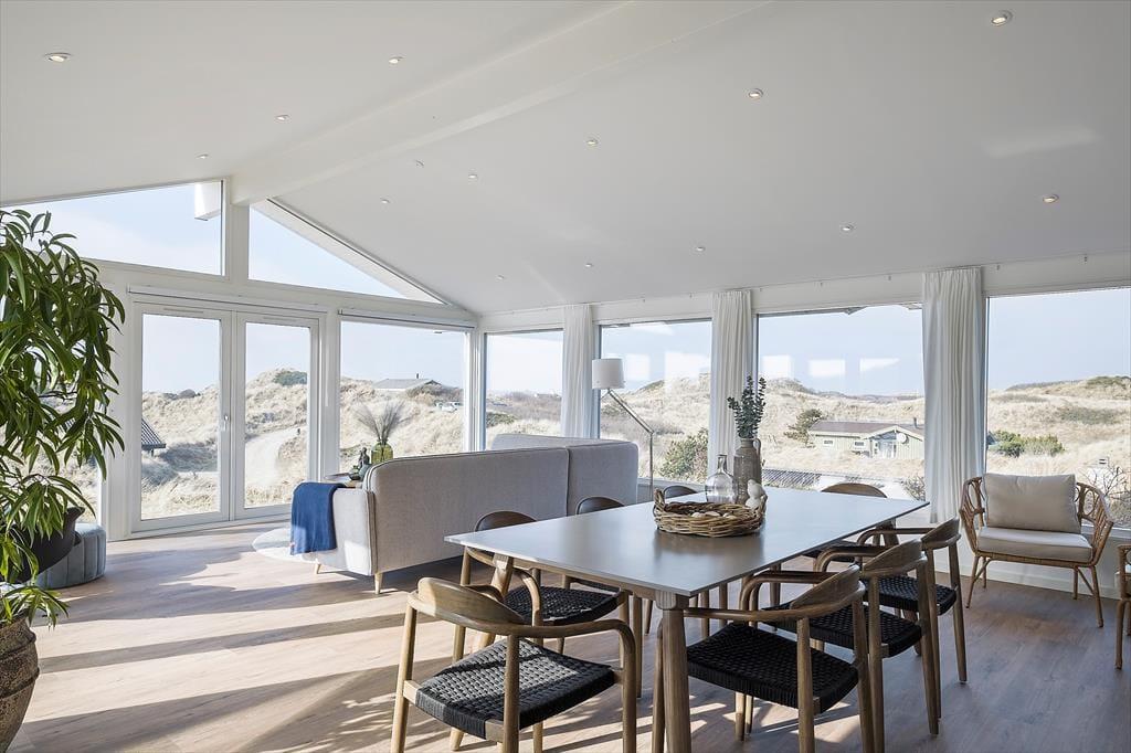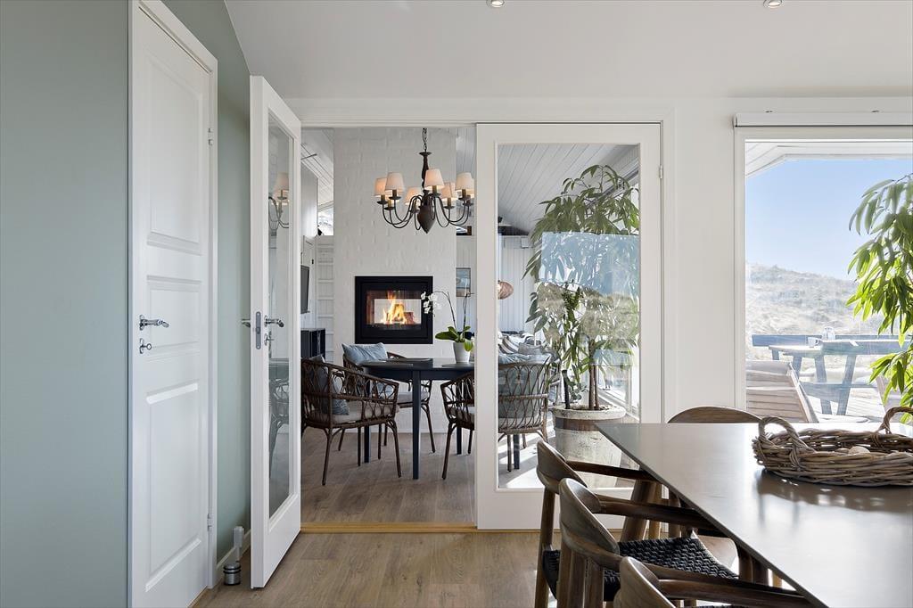 Hvis wellnessafdelingen ikke giver jer øjeblikkelig lyst til at holde ferie her i huset, kan de øvrige rum sikkert overbevise jer. Det 148 m2 store sommerhus er totalrenoveret i 2022, og moderniseringen har været så vellykket, at de lyse rum balancerer perfekt mellem klassisk charme og stilfuld komfort – lidt a la et badehotel, bortset fra, at I har hele huset for jer selv. Mens de fire soveværelser har en klassisk indretning, er det åbne køkken topmoderne og veludstyret, så I har glimrende arbejdsforhold, når der skal laves mad. Foruden wellnessafdelingen byder planløsningen på endnu et badeværelse, og endelig er der husets to opholdsrum: Det førnævnte køkken ligger i åben forbindelse med en pejsestue, og ved siden af ligger endnu en opholdsstue, hvorfra udsigten er nærmest endnu mere betagende.