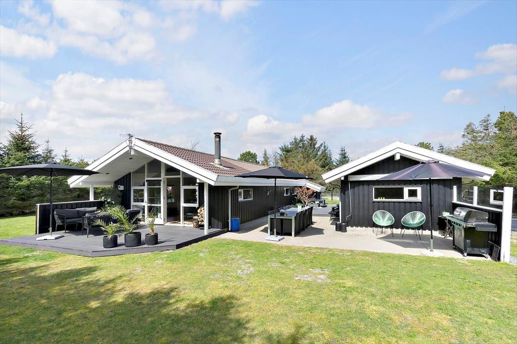 På en lille, lukket vej i Saltum Strandpark finder I dette store og velindrettede sommerhus. Med til huset hører et anneks, og grunden er helt lukket, hvilket kan glæde både småbørnsforældre og hundeejere.
