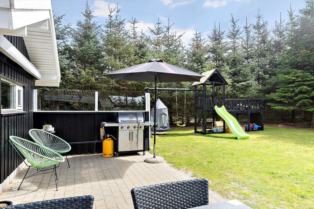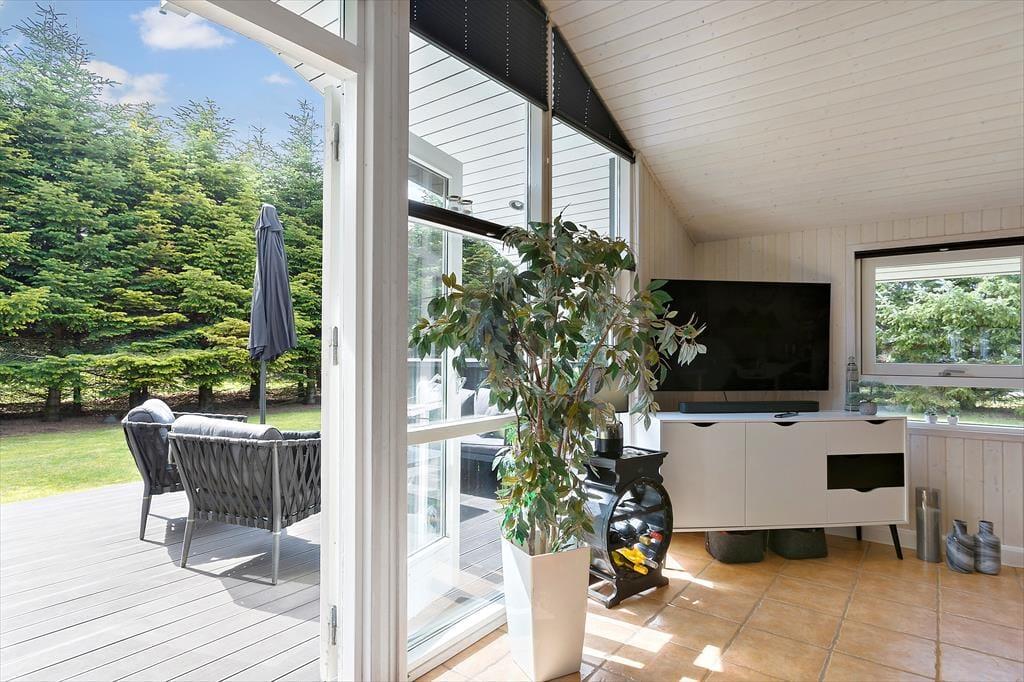 Terrassen er også et godt sted at samles, for her er godt at være, når solen skinner, og den danske sommer viser sig fra sin smukke side. Der er god plads til at sidde i smørhullet mellem sommerhuset og annekset, hvis ikke I hellere vil opholde jer på det sydvendte og delvist overdækkede terrasseområde. Det meste af den 1397 m2 store grund er enkelt holdt med græsplæne og randbeplantning, og det grønne areal er for øvrigt aflukket, så børn og hunde kan lege og løbe frit.
