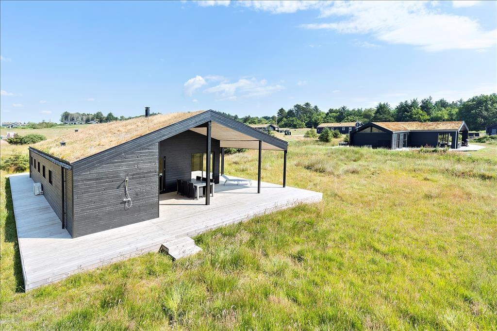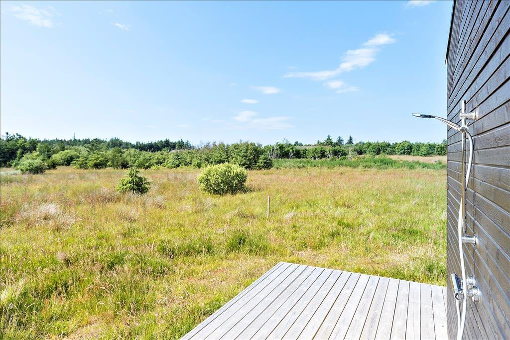 De naturskønne omgivelser får I selvfølgelig også glæde af, når I nyder livet ude på terrassen. Det er en hævet træterrasse, der går hele vejen rundt om huset, og der er endda flere overdækkede afdelinger, hvis I søger skygge eller ly, når duggen falder. Grunden er en stor naturgrund,til gavn for biodiversiteten og ligger med fri udsigt til et beskyttet naturområde, hvor der færdes harer, fasaner, ræve og rådyr. 100 m fra huset går der en direkte sti til stranden og en lille bæk. Hvis man vil skylle saltvandet eller sandet af sig, kan man gøre det under sommerhusets udendørs bruser. Der er opsat Orbis VIARIS UNI BT2 ladestander til bilen, 22 kW (op til 23 A), 7 polet.Der er desuden installeret udendørs stik med mulighed for at lade el-bilen (mormor-lader). Til de mindste er der sandskovle, små spande, kongespil m.m.