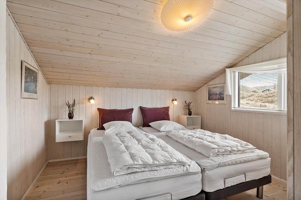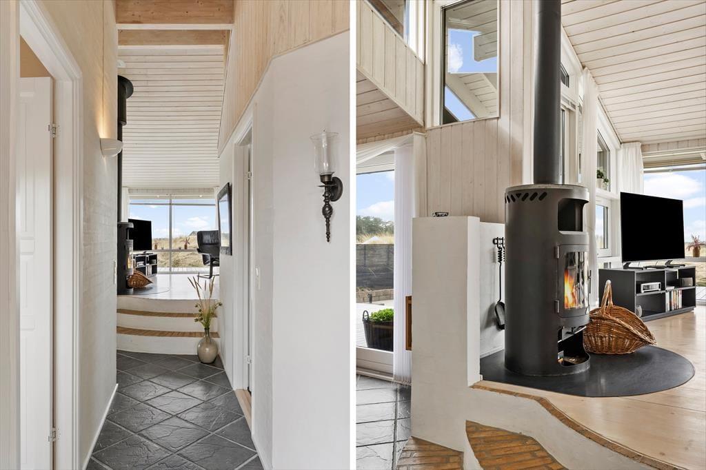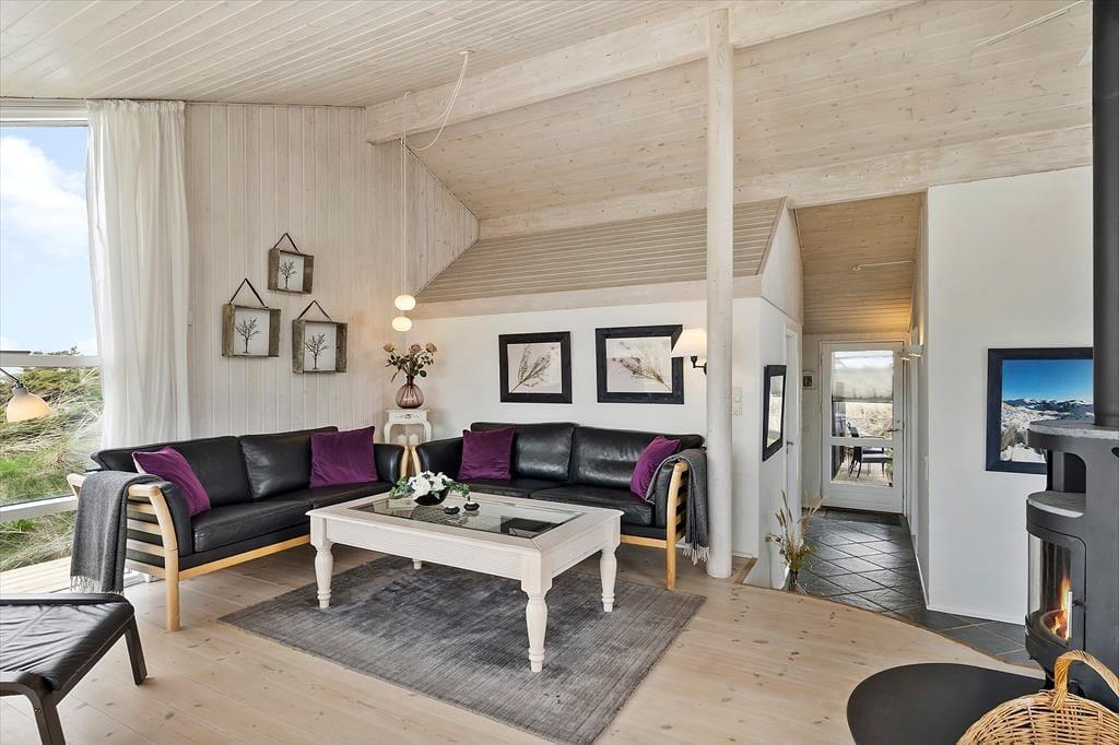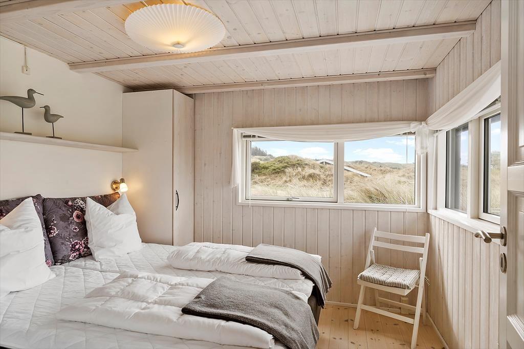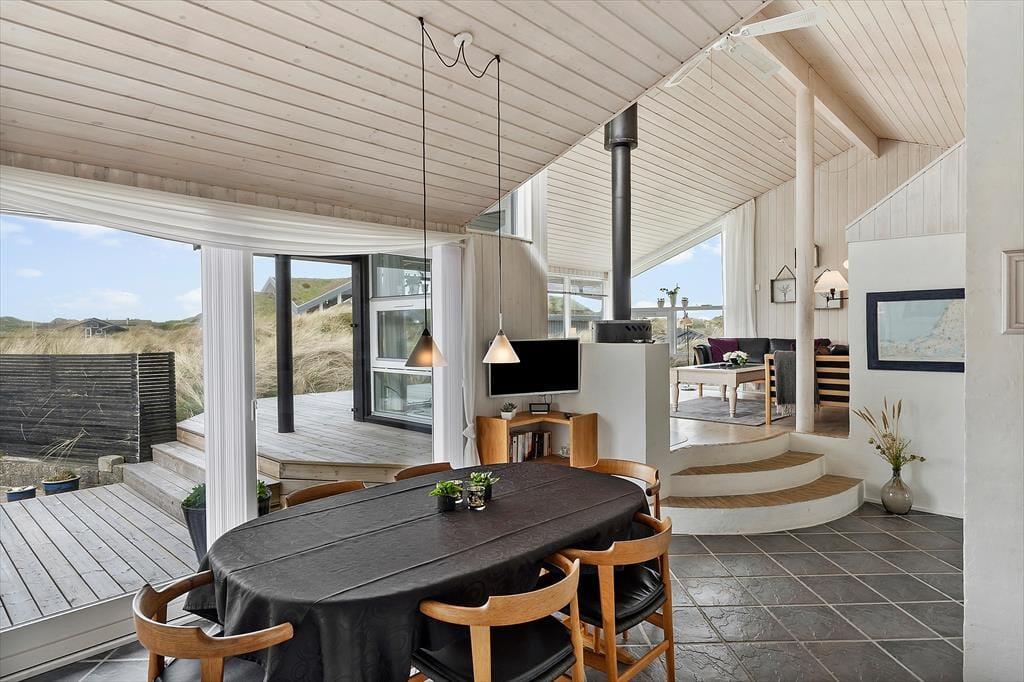Her er masser af lys, flotte gulve, gode møbler og mange fine detaljer. Desuden både spabad, sauna, vaskemaskine, tørretumbler, parabol med en stor VIASAT-pakke og gratis og trådløst internet, så man hurtigt kan søge informationer om områdets mange muligheder. Her er også installeret varmepumpe, hvilket betyder meget lave forbrugsomkostninger, og tænder man op i brændeovnen, kan man spare endnu mere på udgifterne. Sommerhuset har tre værelser og i alt seks sengepladser, så en stor familie vil sagtens kunne finde sig til rette her. Køkken og spiseafdeling hænger sammen, mens stuen ligger et niveau oppe og har en skøn udsigt til klitterne. Et sommerhus, som vi er stolte af at leje ud!