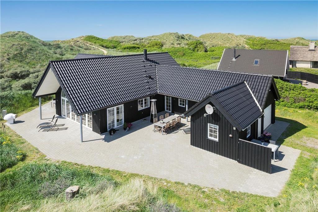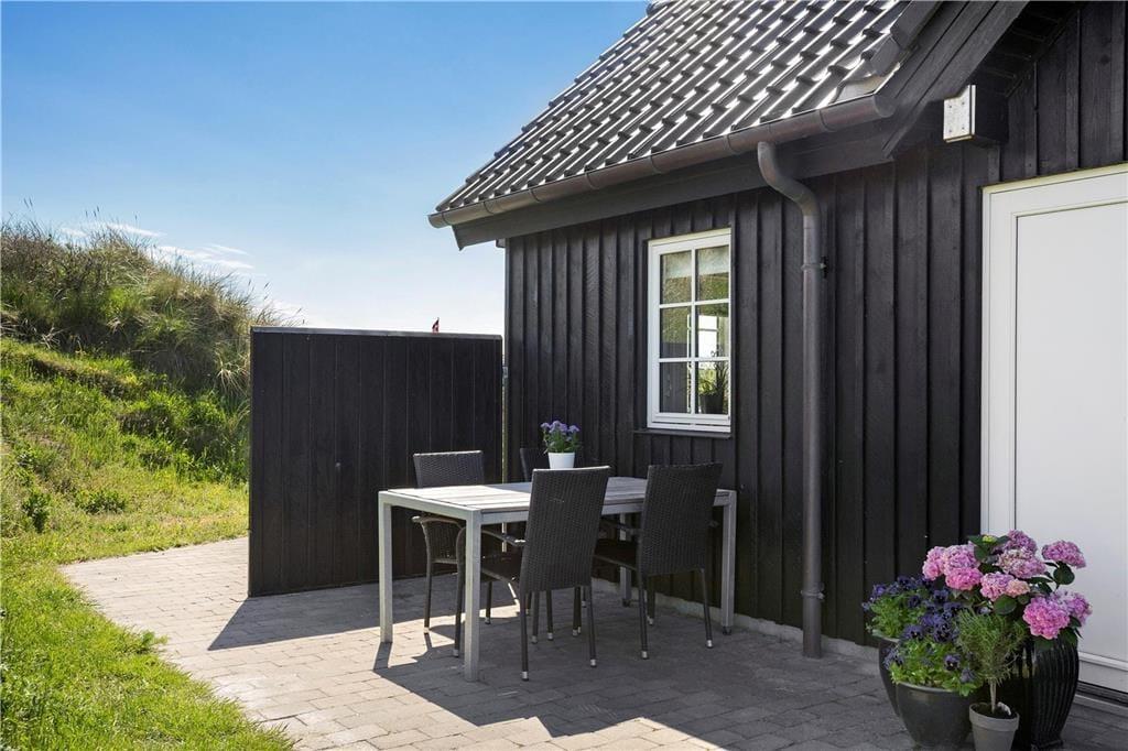 Livsnydertilværelsen kan også tilbringes ude i det fri, for her er der lagt vægt på at skabe en perfekt ferieramme på den 4.029 m2 store og uforstyrrede klitgrund. Hele vejen rundt om huset er der flisebelægning, som flere steder udvider sig til store og skønne terrassearealer. Det betyder, at I har flere opholdspladser at vælge imellem alt efter solens placering på himmelen – og nogle af dem er endda overdækkede, så I kan blive siddende ude og nyde de lyse sommeraftener.