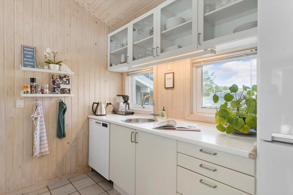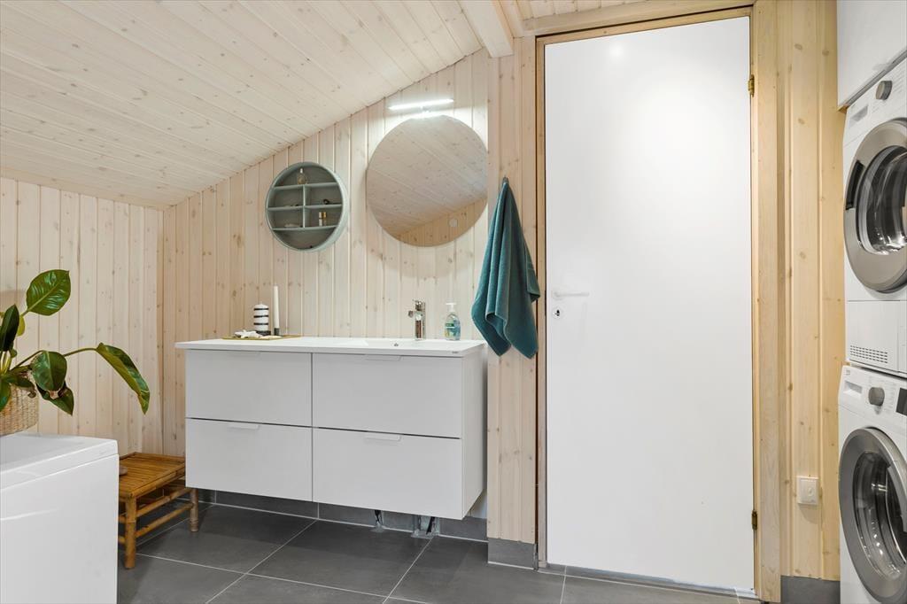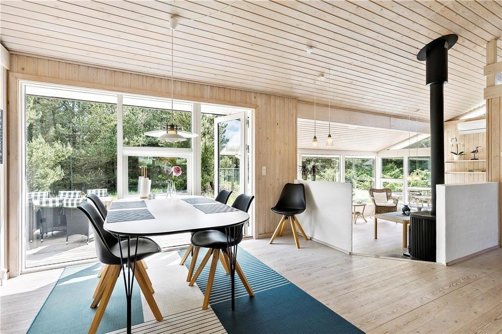 Naturen venter ikke bare udenfor døren, men bliver ligefrem inviteret ind i stuen takket være de store vinduespartier, der giver udsigt til de grønne omgivelser. Dyrelivet er rigt i området, så der er nærmest garanti for at se rådyr, der tripper forbi mellem fyrretræerne, mens I sidder med en god kop kaffe i sofaen nær brændeovnen. Stuen ligger en smule sænket, men stadig i åben forbindelse med et dejligt køkken-alrum, så alt i alt er der masser af plads til at hygge sig sammen her i den lyse og velindrettede opholdsafdeling. Derudover kan I se frem til en god nats søvn på sommerhusets tre soveværelser, og badeværelset vil også vække begejstring, for det er nemlig renoveret i 2022!