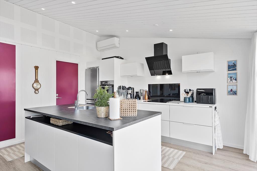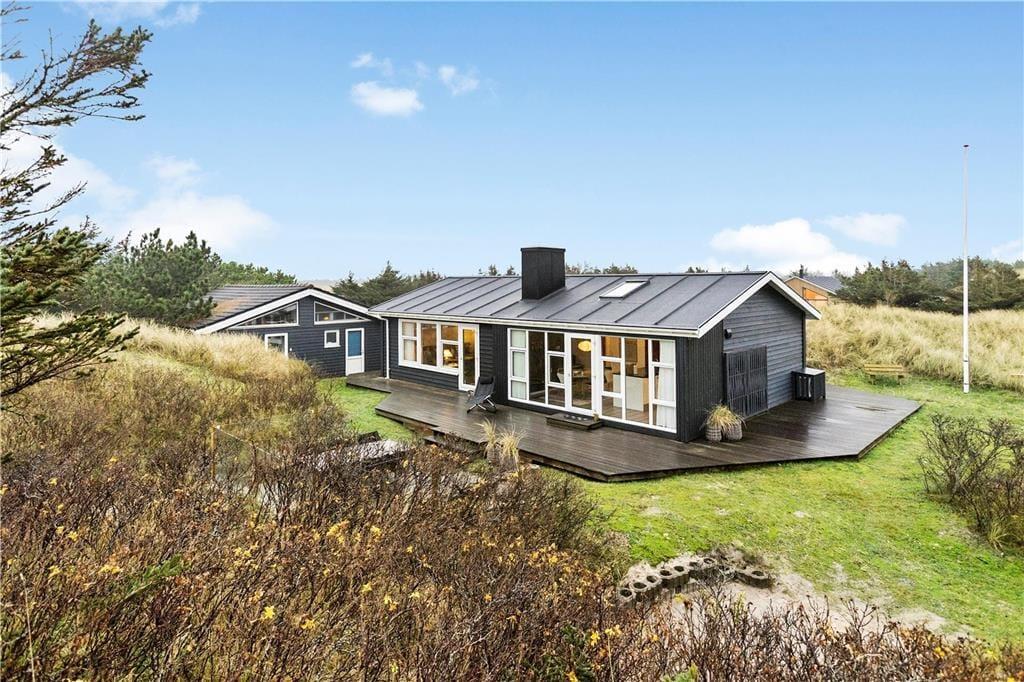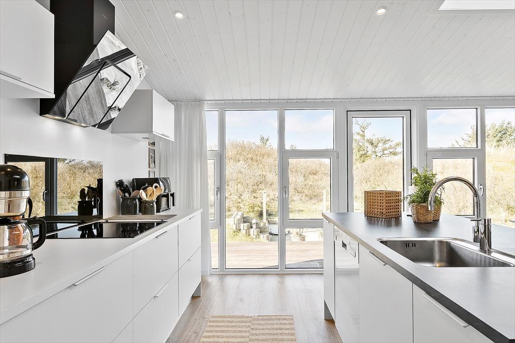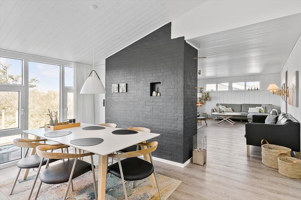 Sommerhuset har ligget i det smukke nordjyske kystlandskab siden 1978, og så sent som i 2019 fik det en gevaldig opgradering, da det blev renoveret. Resultatet er lyst og indbydende, for rummene prydes af stilrent møblement og charmerende hyggedetaljer – og de store vinduers udsigt til marehalm og krogede fyrretræer passer skønt til både farvesætningen og den nordiske indretningsstil. Tre soveværelser og et badeværelse med gulvvarme, vaskesøjle og bruseniche er alle gode og reelle rum. Flest kvadratmeter er dog dedikeret til den vestvendte opholdsafdeling, der består af et rummeligt køkken-alrum og en tilstødende flot stue. Takket være den åbne forbindelse kan I nyde hinandens selskab, selvom der er gang i sofahygge og madlavning på samme tid, og I har stadig fornemmelsen af at kunne finde en fredelig krog nær indbygningspejsen, hvis der for eksempel skal være ro til at læse.
