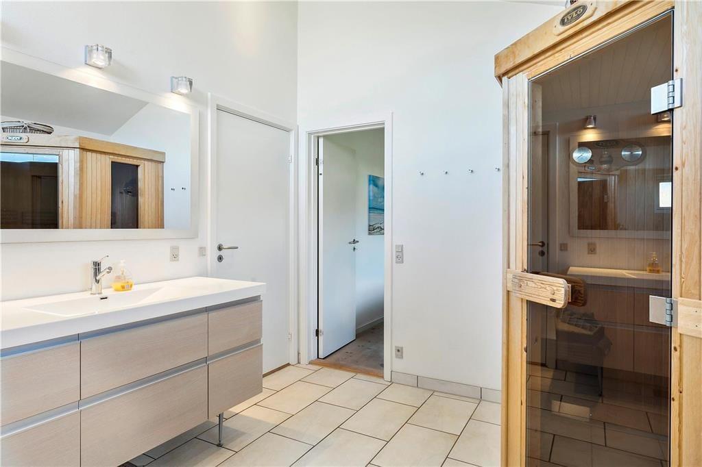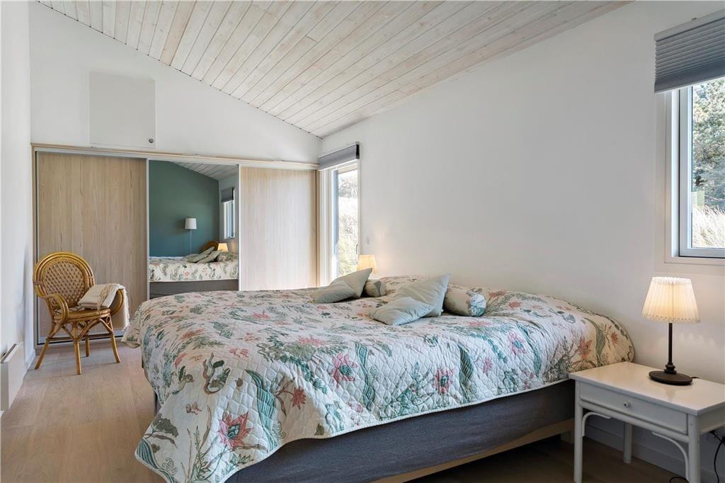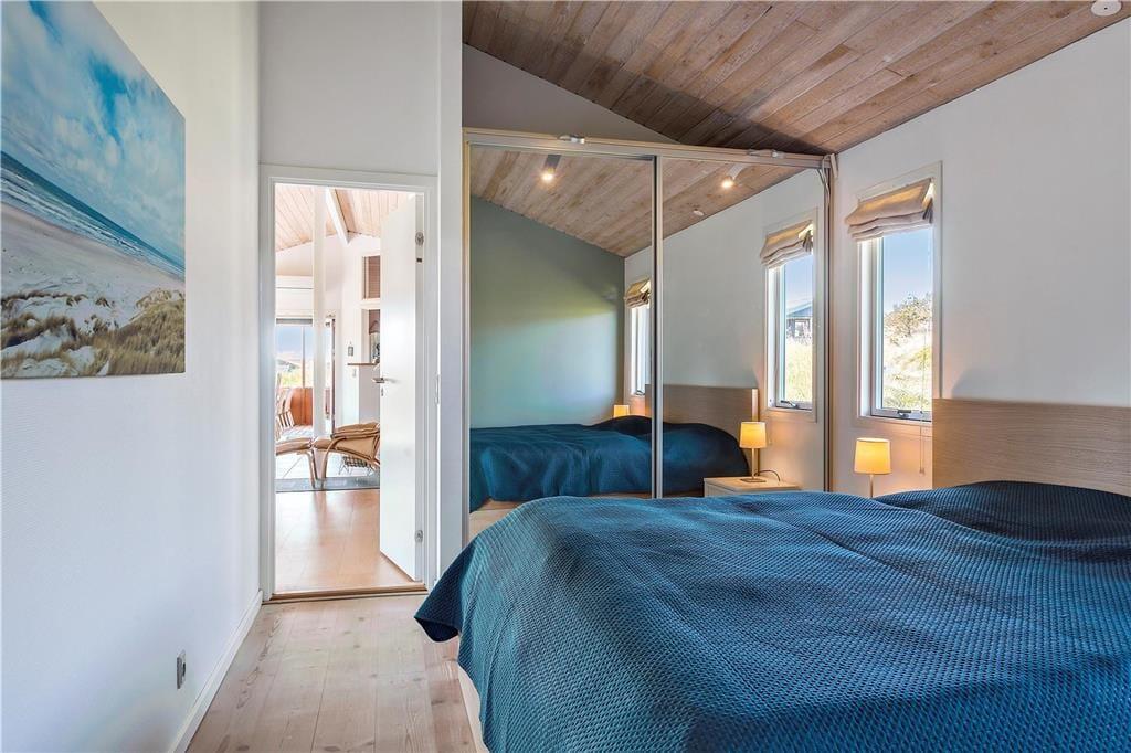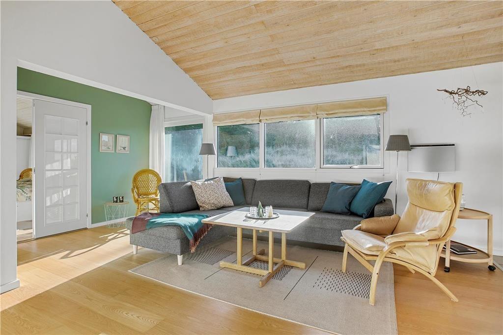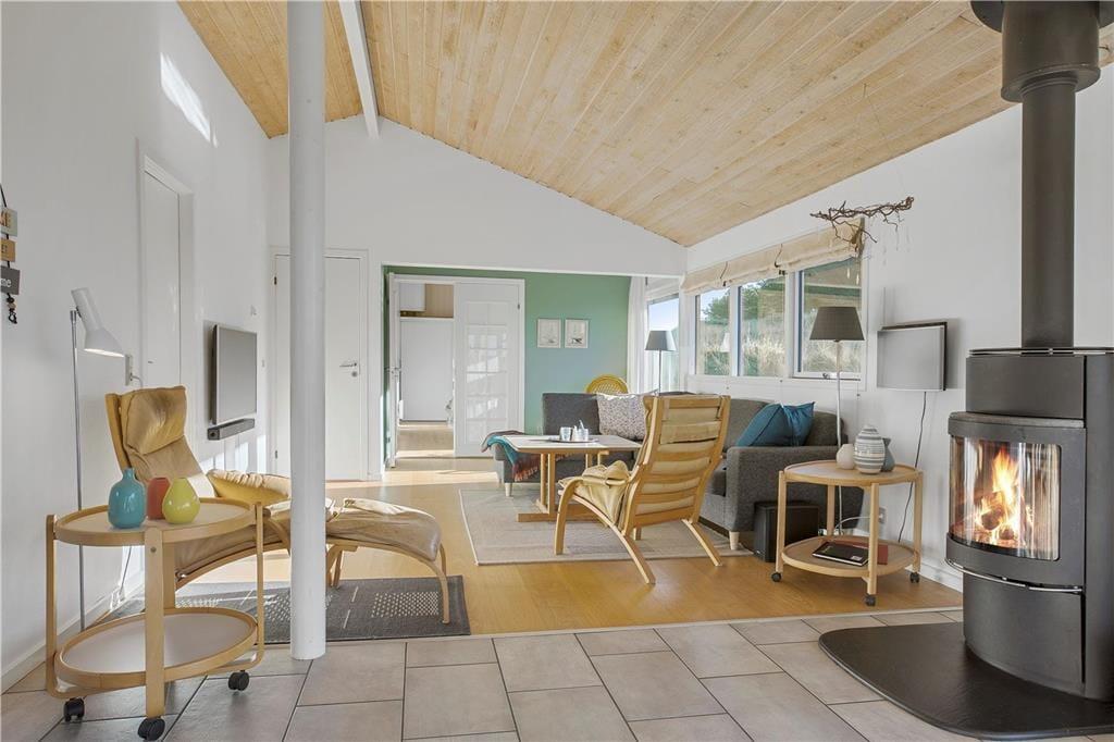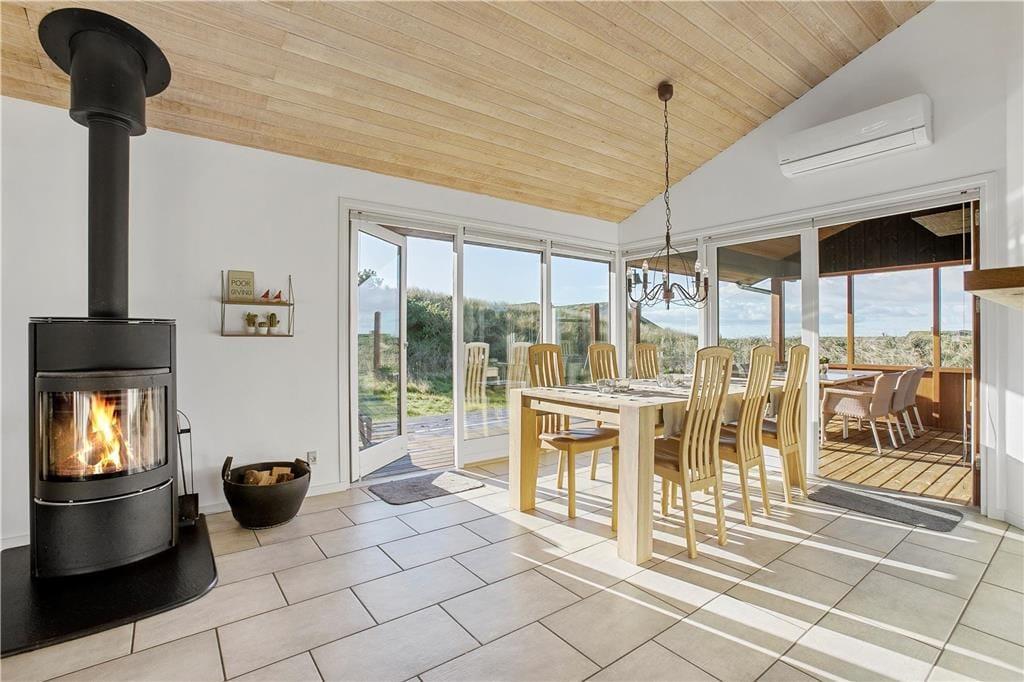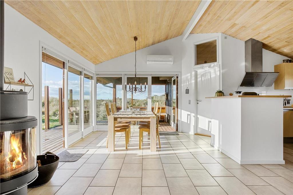 Sommerhuset er smukt indrettet i en let romantisk stil og med kvalitet i højsædet. Både familier og vennepar vil føle sig godt tilpas her og få tanket op med ny energi. Fra den kombinerede spise- og opholdsafdeling er der kig til Vesterhavet; hvem kunne ikke sidde her, med ild i brændeovnen, og lade hyggen og den afslappede stemning indfinde sig. Køkkenet er veludstyret, og på det store badeværelse er både spabad og sauna samt ny Rainshower bruse system, og hvis vejret skulle drille en enkelt dag, kan man benytte PlayStation-konsollen eller logge på det trådløse og gratis internet. Alt i alt et velfungerende og godt udstyret sommerhus, hvor både voksne og børn vil få en uforglemmelig ferie.