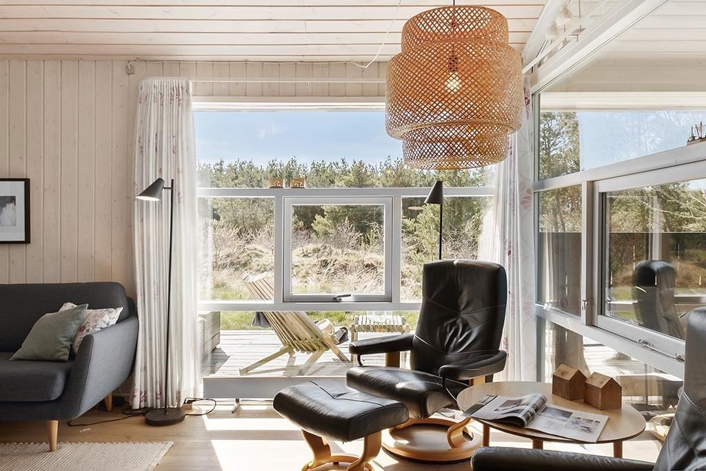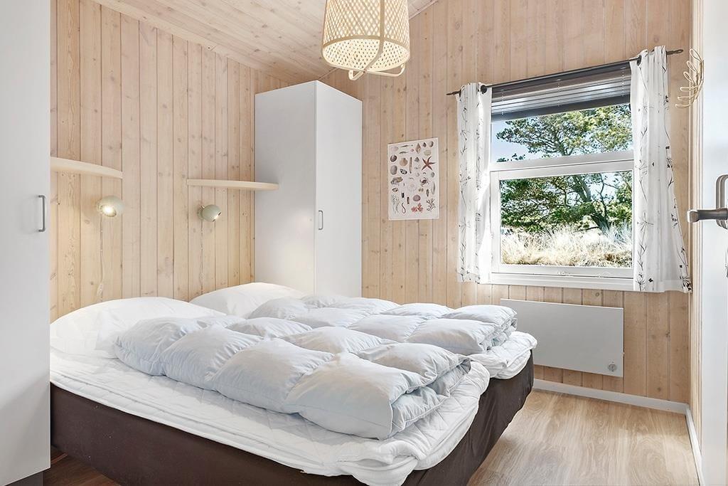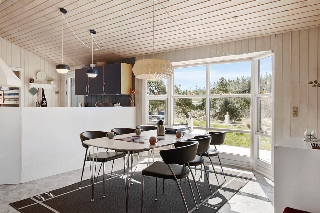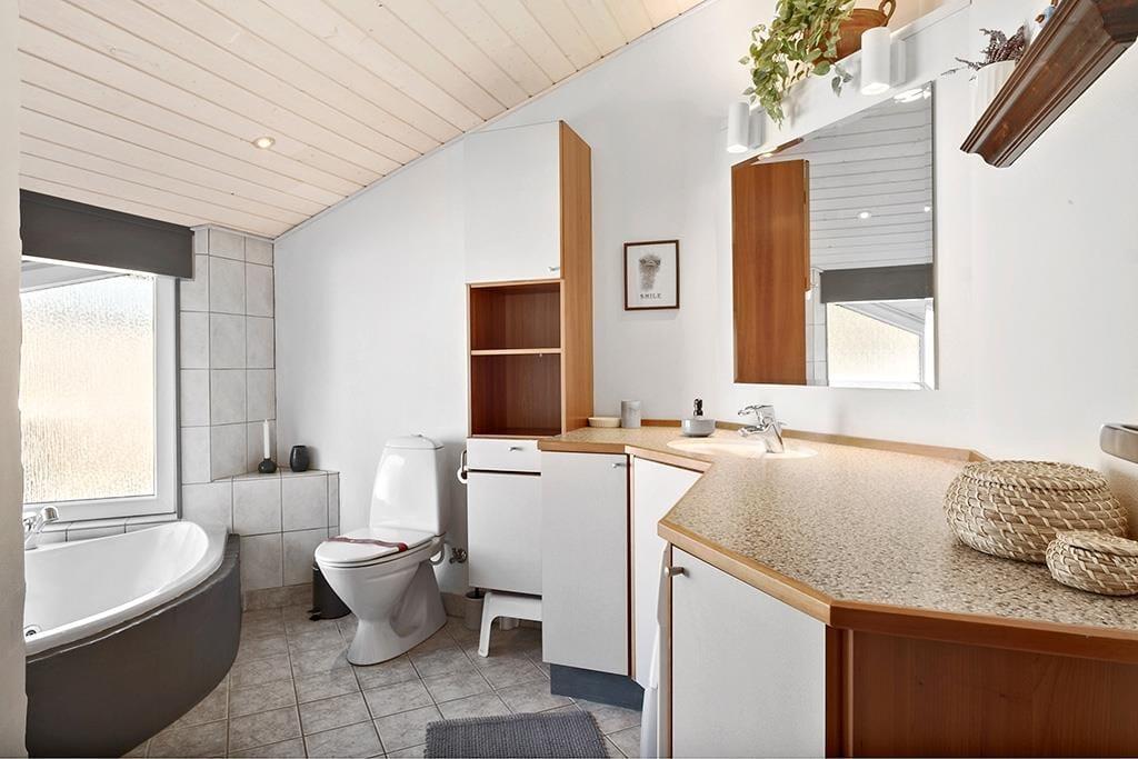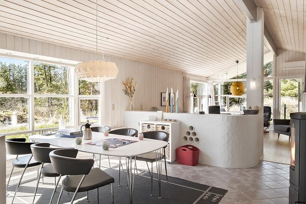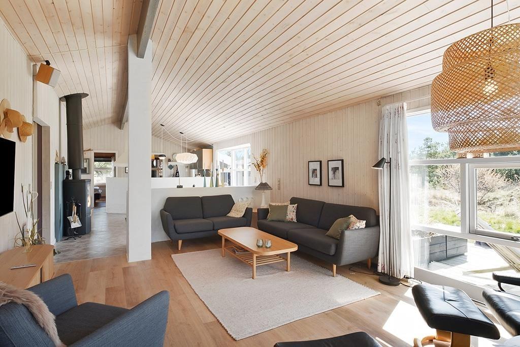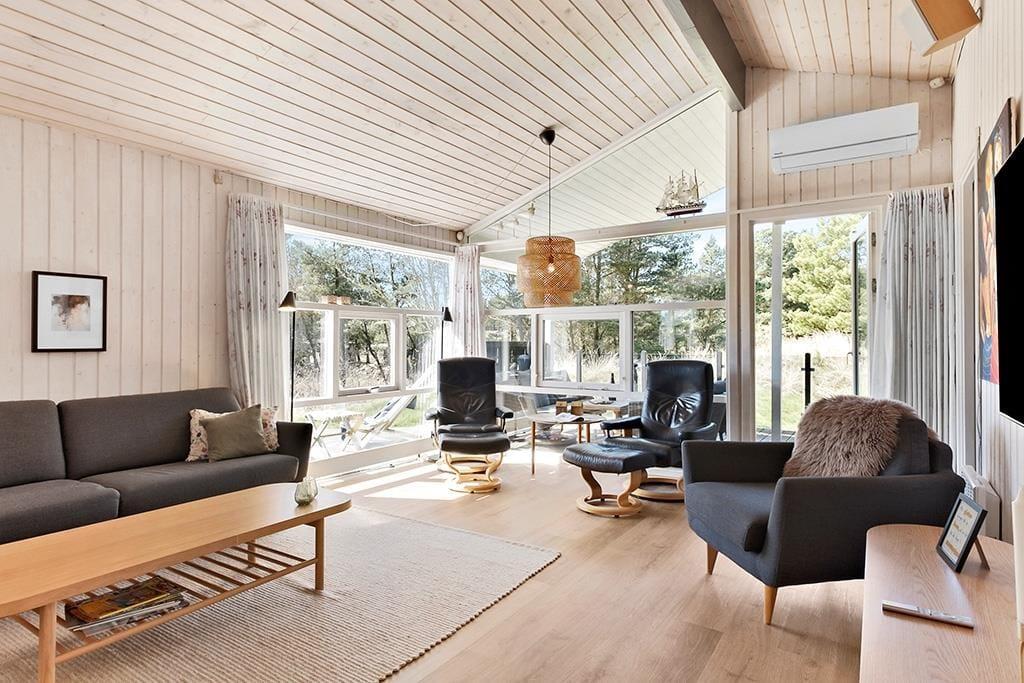 Dette sommerhus er velholdt, flot indrettet, har masser af charme og hyggestemning og hører til i vores absolutte topklasse. Det er et sommerhus, som kun lejes ud ganske få uger om året, så der er rift om at få lagt bestillingerne ind. Det store og åbne opholdsrum, som består af køkken, spisestue og stue, fungerer som det naturlige samlingspunkt for hele familien; det er her man spiser, spiller, læser og ser tv sammen. Midt i huset står en flot brændeovn, og på det store badeværelse kan man lade sig synke ned i det varme vand i spabadet og lade kroppen slappe helt af. Sommerhuset er særdeles velegnet til en familieferie, eller hvis man er to eller tre par, som gerne vil afsted sammen.