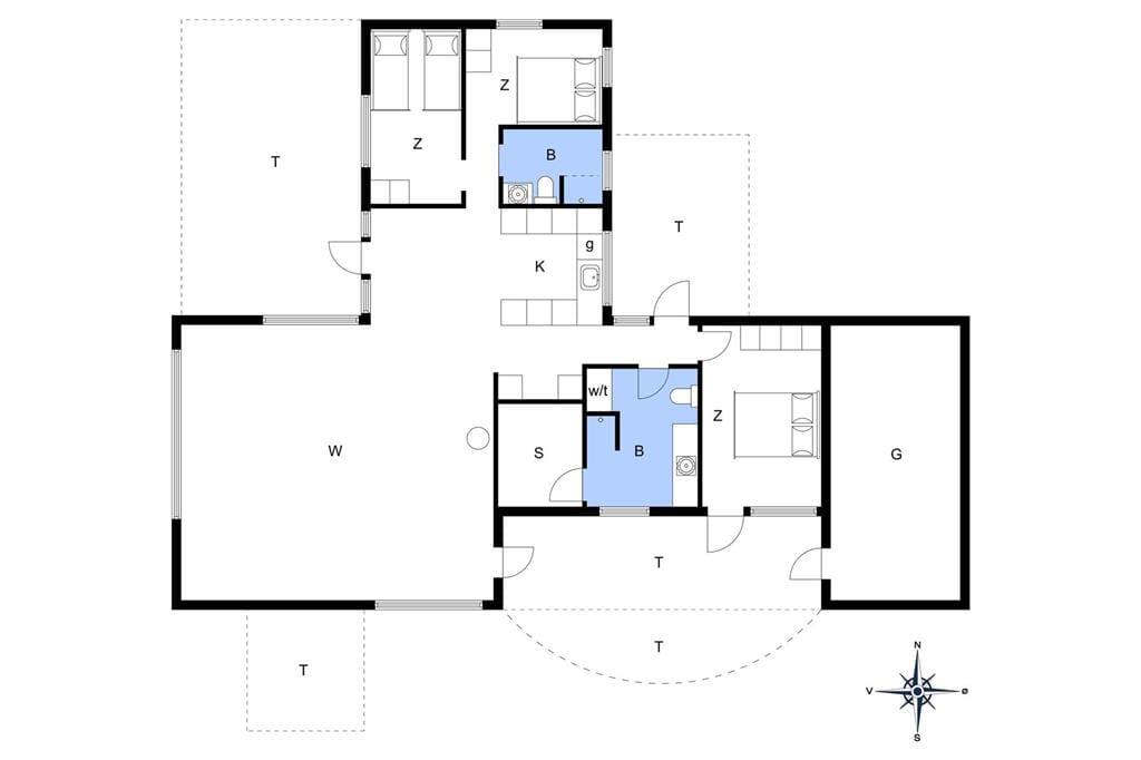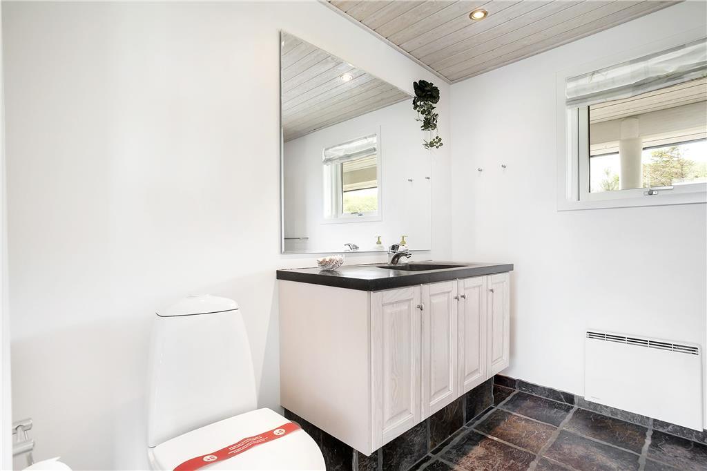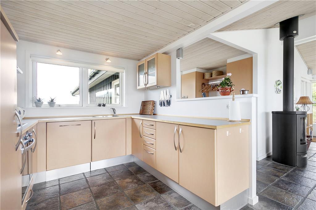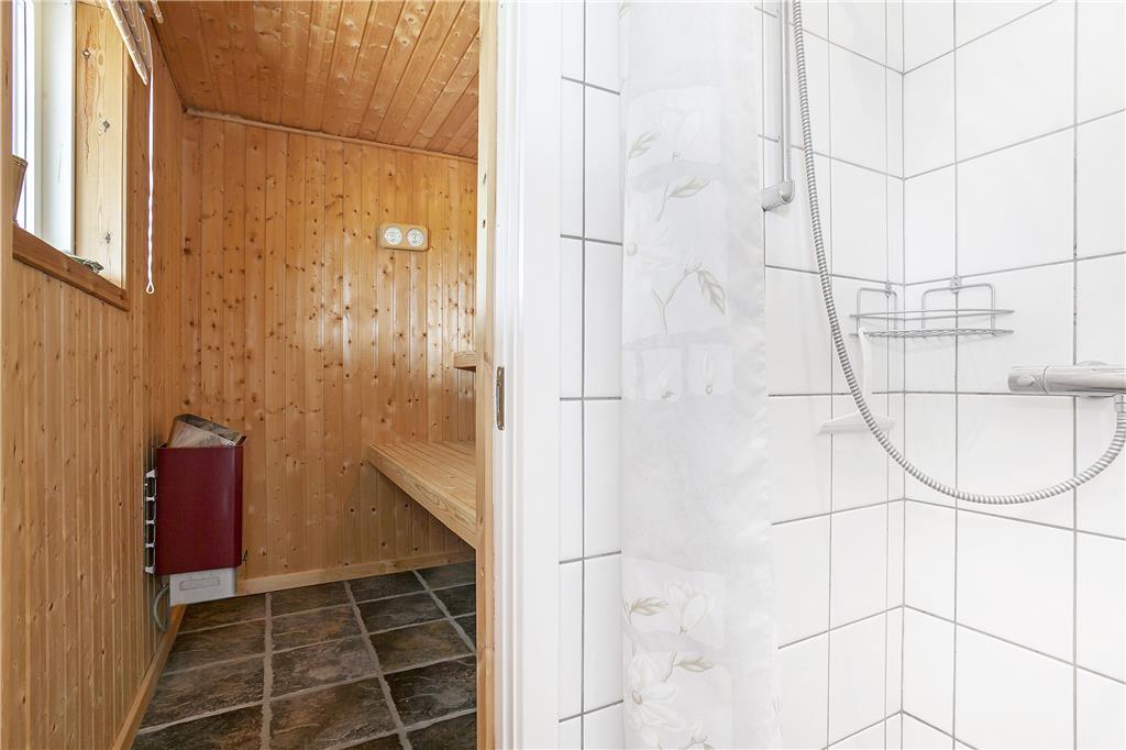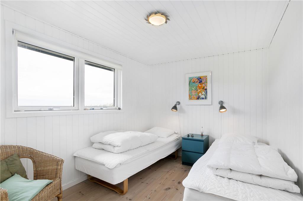 Dette fine sommerhus har alt, hvad en vellykket ferie ved Vesterhavet skal indeholde: et gennemrenoveret og velfungerende hus med en formidabel havudsigt, gode terrasser og kun en lille gåtur til strandkanten. Huset er smagfuldt indrettet og godt udstyret; bl.a. med sauna, vaskemaskine og tørretumbler på det ene badeværelse og naturligvis med gratis og trådløst internet, så man hurtigt kan tjekke vejrudsigten og søge informationer om områdets mange muligheder. Det fantastisk flotte opholdsrum bliver det helt naturlige samlingssted for hele familien; her kan man sidde i de behagelige møbler og nyde udsigten over klitlandskabet og Vesterhavet, og med ild i brændeovnen spreder hyggen sig hurtigt. Sommerhusets tre soveværelser er placeret, så man på meget praktisk vis kan dele sig op i en voksen og en børneafdeling; alternativt vil to par, som ønsker at holde ferie sammen, også hurtigt finde sig til rette her.