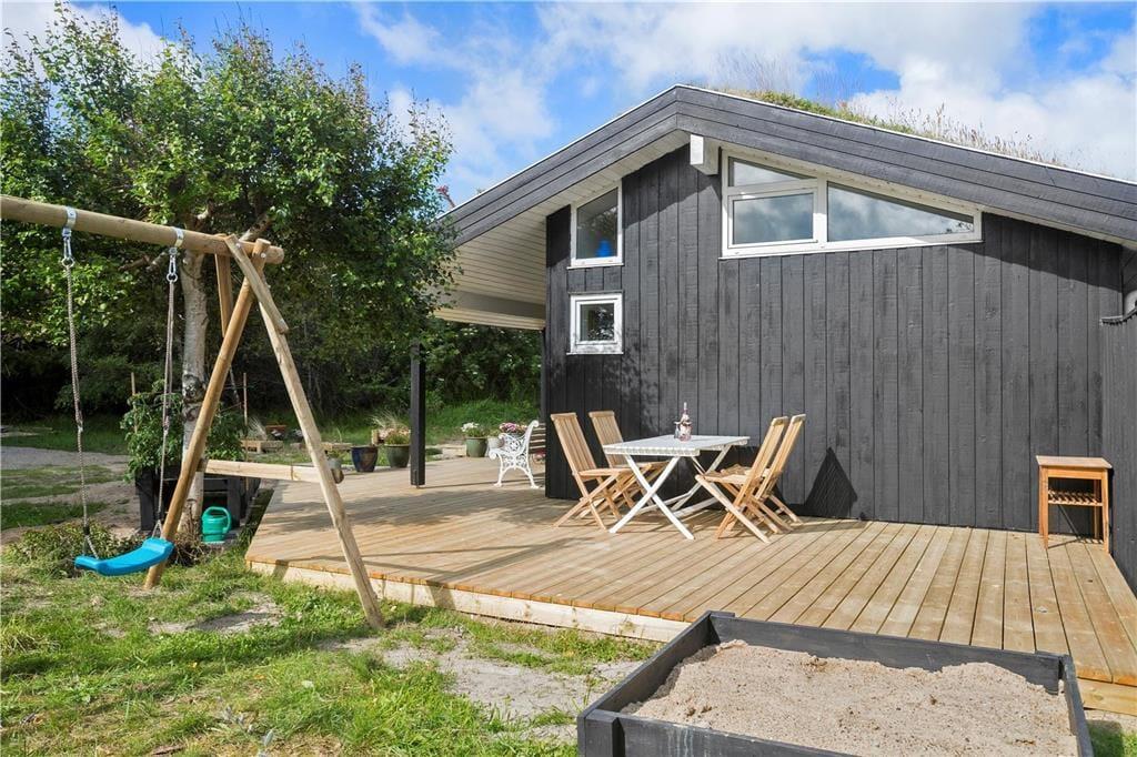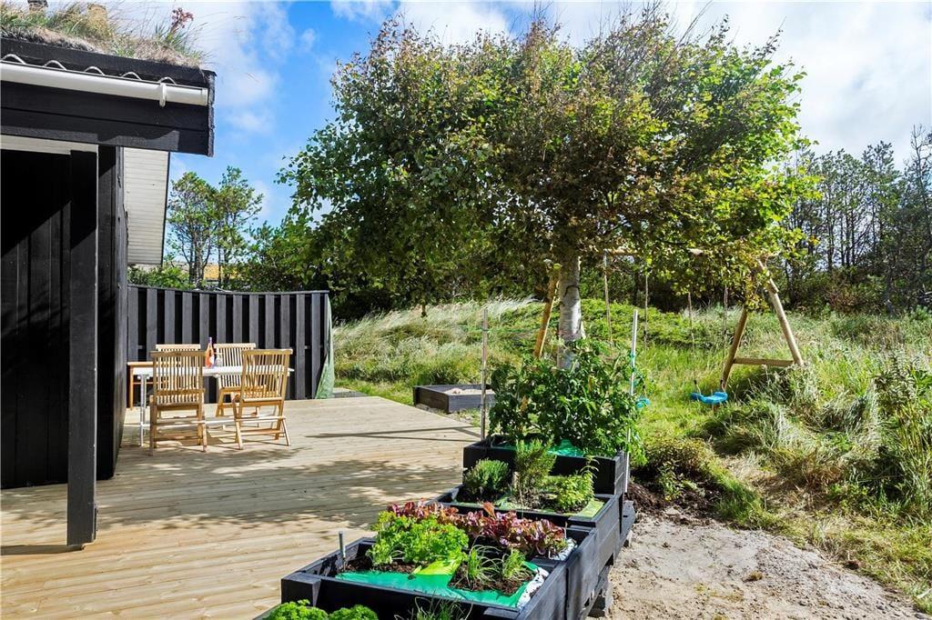 Udenfor venter en dejlig naturgrund, hvor der er god plads til både leg og afslapning. Her kan børnene spille bold eller bygge sandslotte, mens de voksne nyder solen på terrassen eller laver lækre grillmiddage. Den store grund giver mulighed for både at finde læ og nyde solens stråler eller tage en pause i skyggen. Om aftenen er det perfekt at slappe af med et glas vin på terrassen og lade sig betage af den ro, som stedet tilbyder.