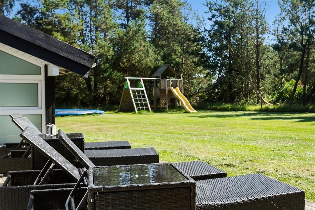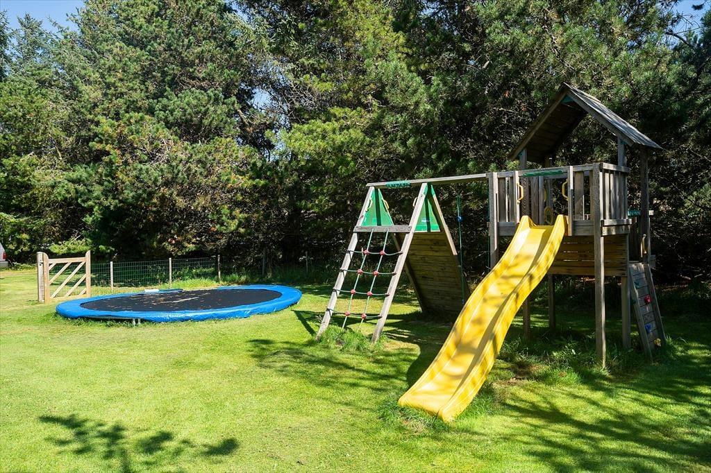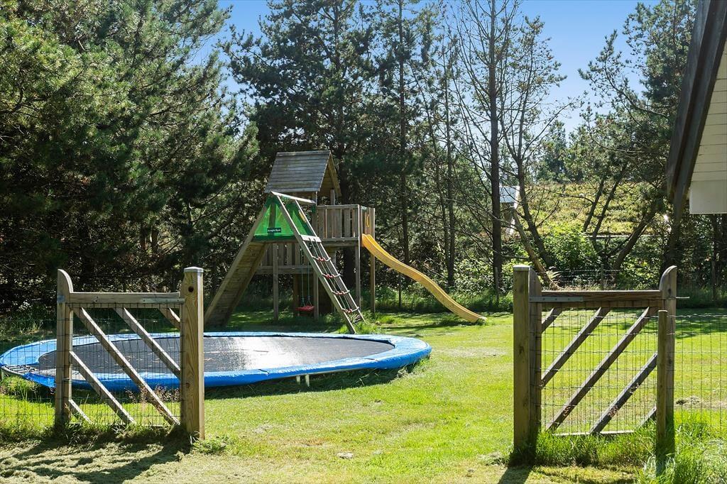 Sommerhuset ligger på en stor og ugeneret grund, der indbyder til både leg og afslapning i det fri. Her er der god plads til børnenes leg og til boldspil på græsset – og hvis du har lyst til lidt ekstra sjov, er der også en trampolin. Den store have giver også mulighed for afslapning og ro i en fredfyldt atmosfære, så du kan nyde ferien i fulde drag. Når vejret tillader det, kan du slappe af på terrassen og få lidt sol, mens du nyder udsigten over den grønne have. Om aftenen kan du samles med familien og grille et lækkert måltid under åben himmel, mens du lader solen gå ned.