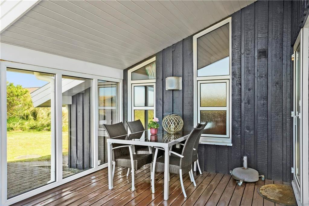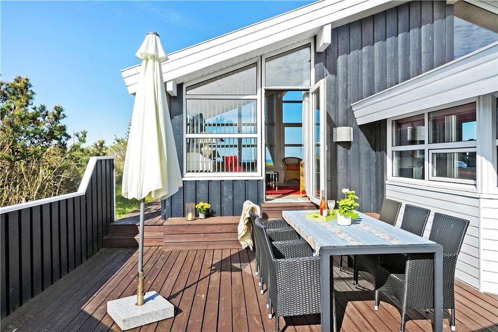 Udenfor er der virkelig plads til at nyde både sol og sjove aktiviteter. Den store grund er perfekt til udendørs boldspil eller bare afslapning på græsset. Hvis du vil tage en pause fra solen, kan du søge skygge på terrassen, der giver mulighed for både at spise ude eller bare slappe af. Der er også en skøn gårdhave, hvor du kan sidde i ro og mag og nyde aftensolen. Stranden er kun en kort gåtur væk, og her kan du tage en dukkert eller bare gå en tur langs vandet og mærke sandet mellem tæerne. Med havet lige i nærheden og den rummelige grund, kan du virkelig få den ultimative ferieoplevelse i naturens nærvær.