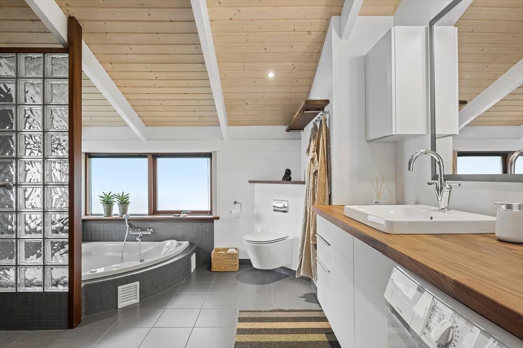Stuens havedøre giver jer nem adgang til det lækre terrassemiljø, der breder sig rundt om huset. Mod sydvest er en mindre del af terrassen overdækket, men ellers er den åben, så I får rig mulighed for at nyde solen både morgen, middag og aften. I kan også tage en slapper i hængekøjen, og børnene kan gynge eller lege i sandkassen, hvis ikke I alle vil deltage i havespil på naturgrundens store græsplæne. Gratis adgang til tennisbane. Huset har også indbygget el-ladestander ved huset.