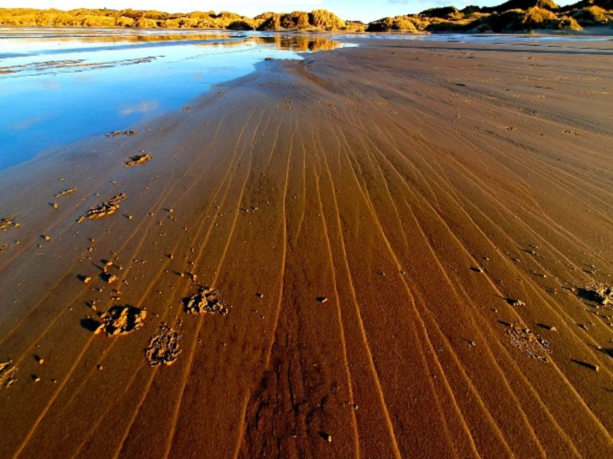 Huset imponerer med sit moderne design og høje lofter, der åbner op til højdedraget, hvilket skaber en luftig og indbydende atmosfære. Store vinduer indrammer det evigt skiftende kystlandskab og bringer det udendørs ind. I hver ende af hjemmet finder du et privat soveområde med to soveværelser og et badeværelse – et ideelt layout for to familier, der deler det. Det større badeværelse tilføjer et strejf af luksus med en dobbelt bruser og et badekar, perfekt til at slappe af efter en dag på stranden.