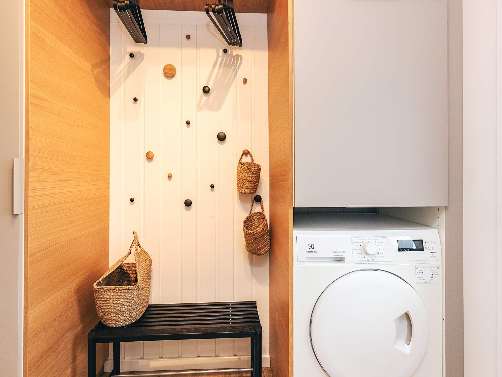 Bad/wc: Vaskemask., tørretumbler, wc, håndvask, bruser