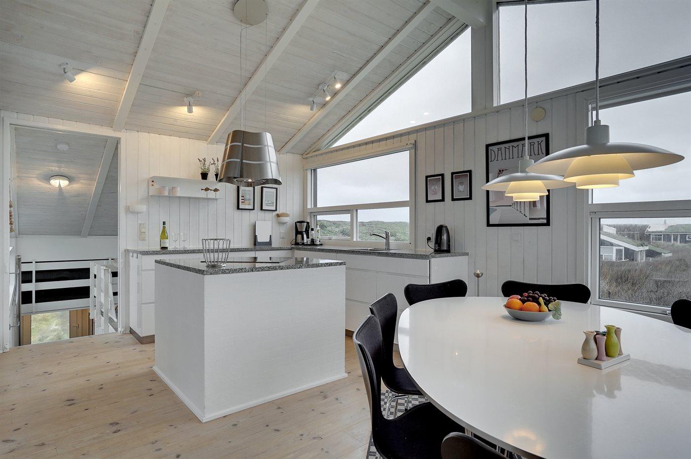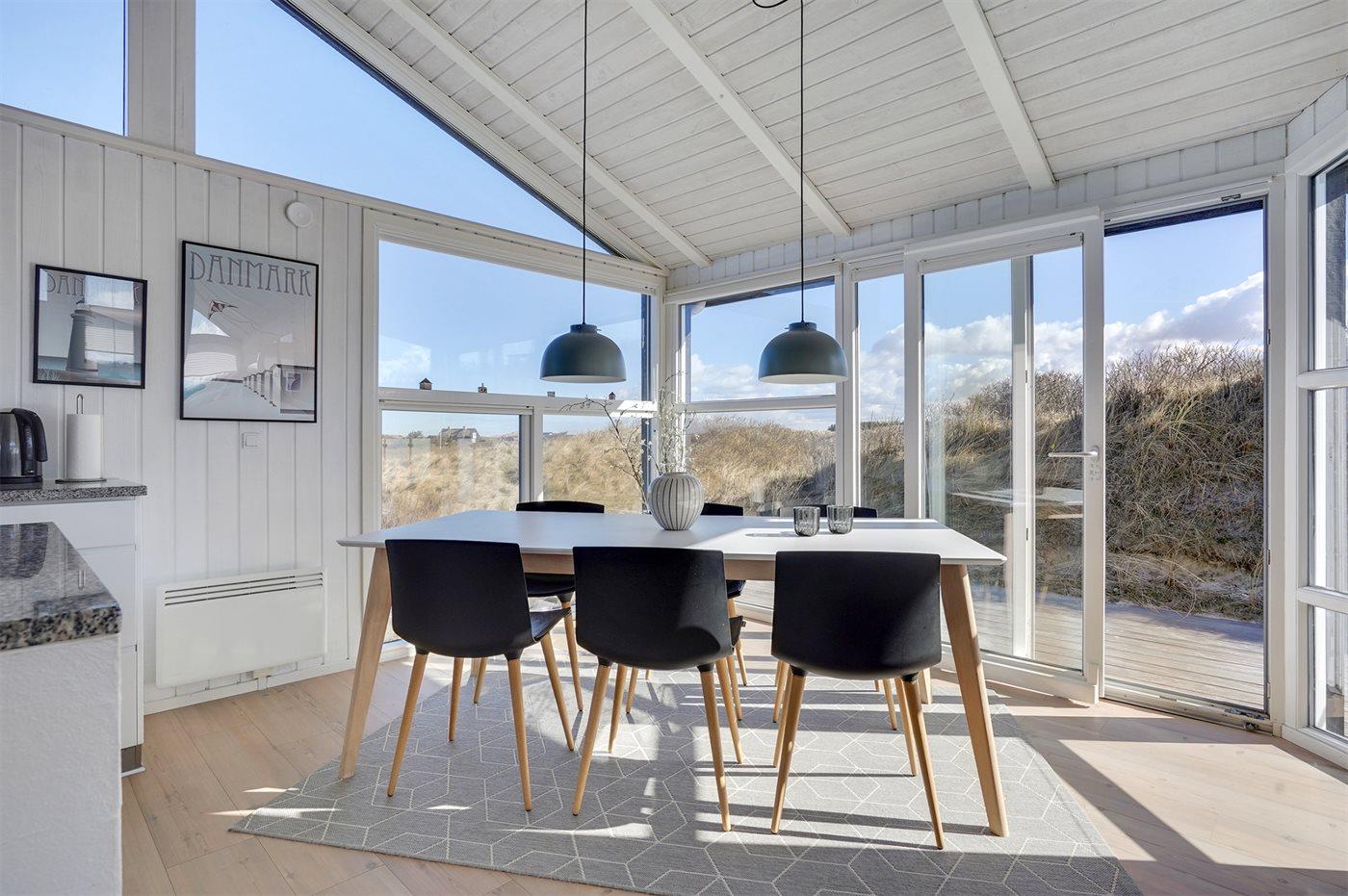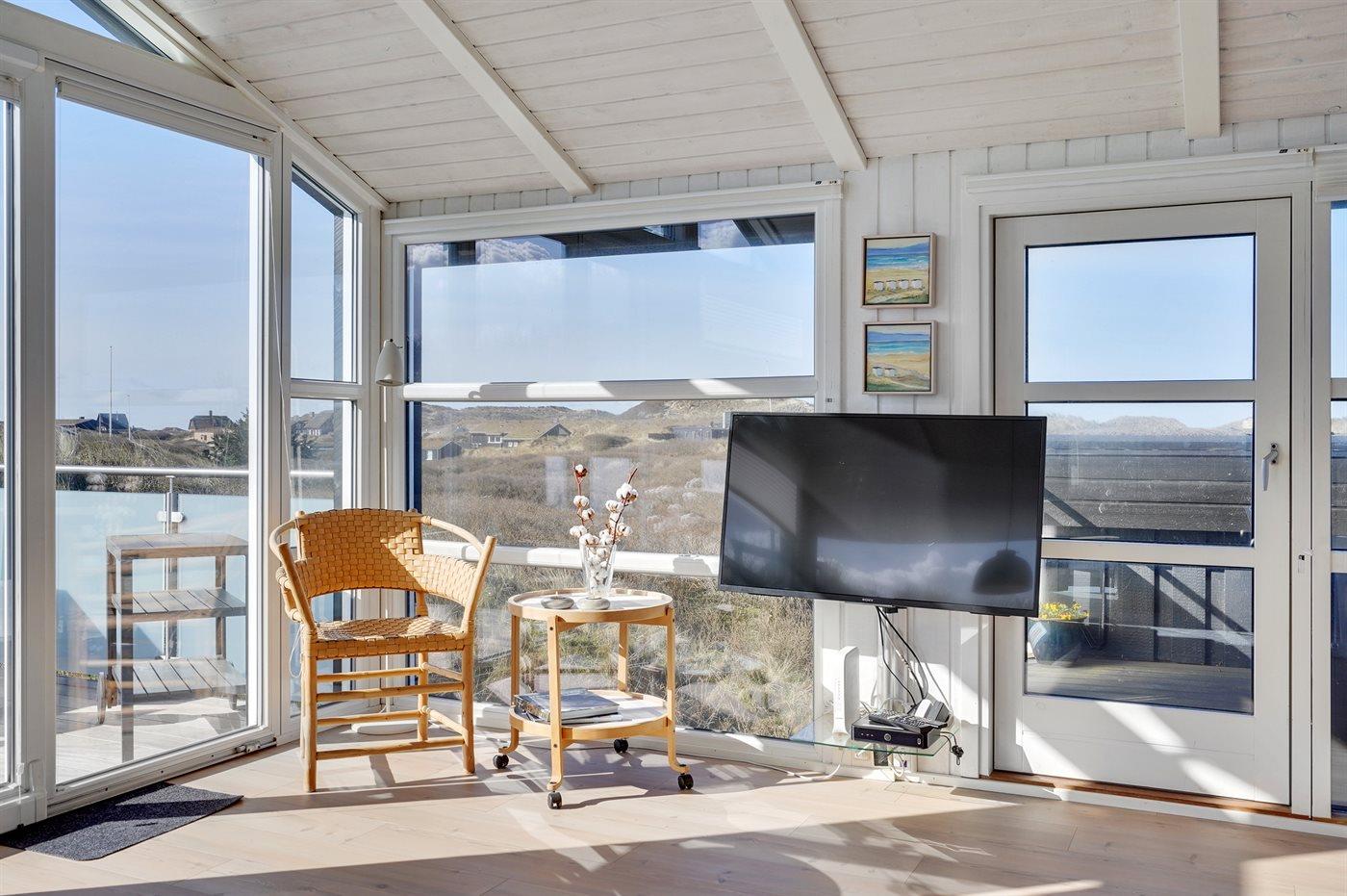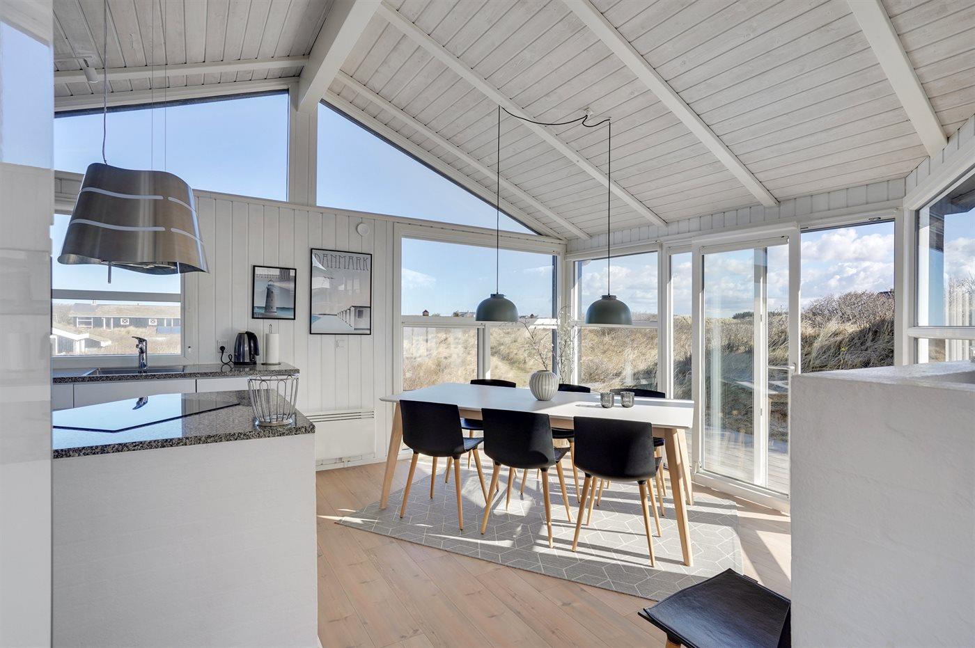 Dette indbydende luksussommerhus indeholder bl. a. swimmingpool, spa, sauna, vaskemaskine, tørretumbler, opvaskemaskine, mikrobølgeovn, fryser, stereoanlæg med CD-afspiller og TV med parabol (digital). Huset er i 2 plan, bygget i træ i 1991og delvist renoveret i 2009 med bl.a. nyt køkken. Huset ligger på en stor, kuperet natur-/klitgrund, kun 230 m fra Vesterhavet og der er havudsigt fra grunden. Til huset hører stort, åbent terrasseareal med diverse havemøbler. Dels trægulve, dels opvarmet klinkegulv. Væggene og lofterne er beklædt med hvidmalet træ. Ny, flot køkkenafdeling (2009) kombineret med spise-/opholdsstuen. Der findes brændeovn samt gratis, trådløs internetforbindelse (computer skal medbringes). Huset indeholder 2 badeværelser, begge med bruseniche. Stor, pragtfuld swimmingpool-afdeling. 4 komfortable soverum (2 med dobbeltseng, 1 med 2 enkeltsenge og 1 med 2 køjer). Der er god skabsplads. Huset er smagfuldt og hyggeligt indrettet. Høj barnestol forefindes. Carport. Der er installeret oplader til elbil. Gynge til børnene. Huset er velegnet til såvel 1 som 2 familier. Et dejligt, spændende sommerhus med en herlig beliggenhed i det kuperede klitområde ved den brede sandstrand ved Saltum. Bemærk: Trapper fører op til huset.
