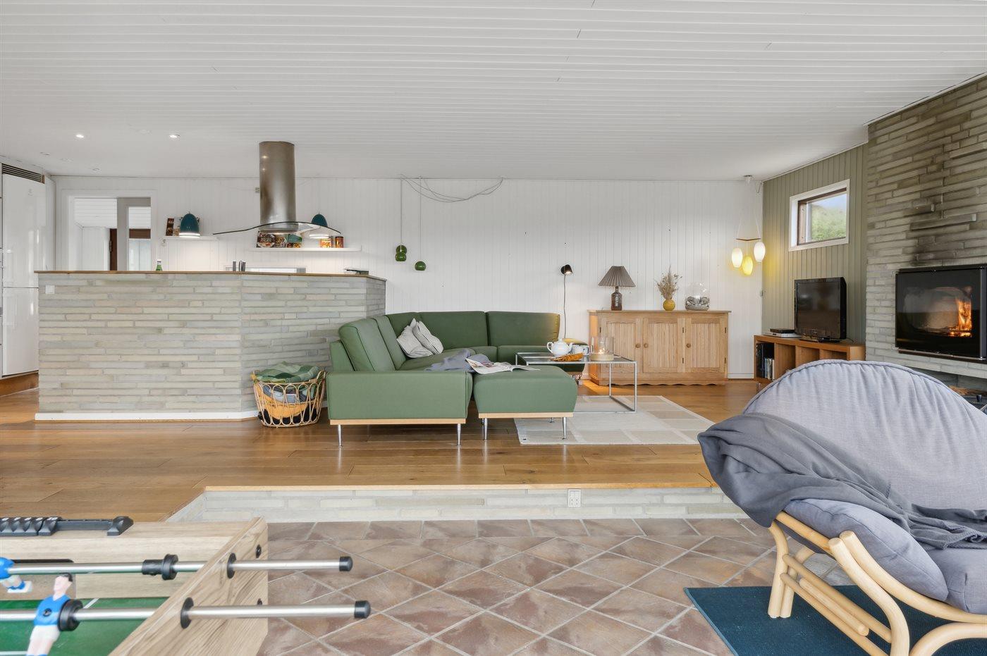 Skønt sommerhus nær Vesterhavet med anneks, sauna og stor terrasse på kuperet grund.