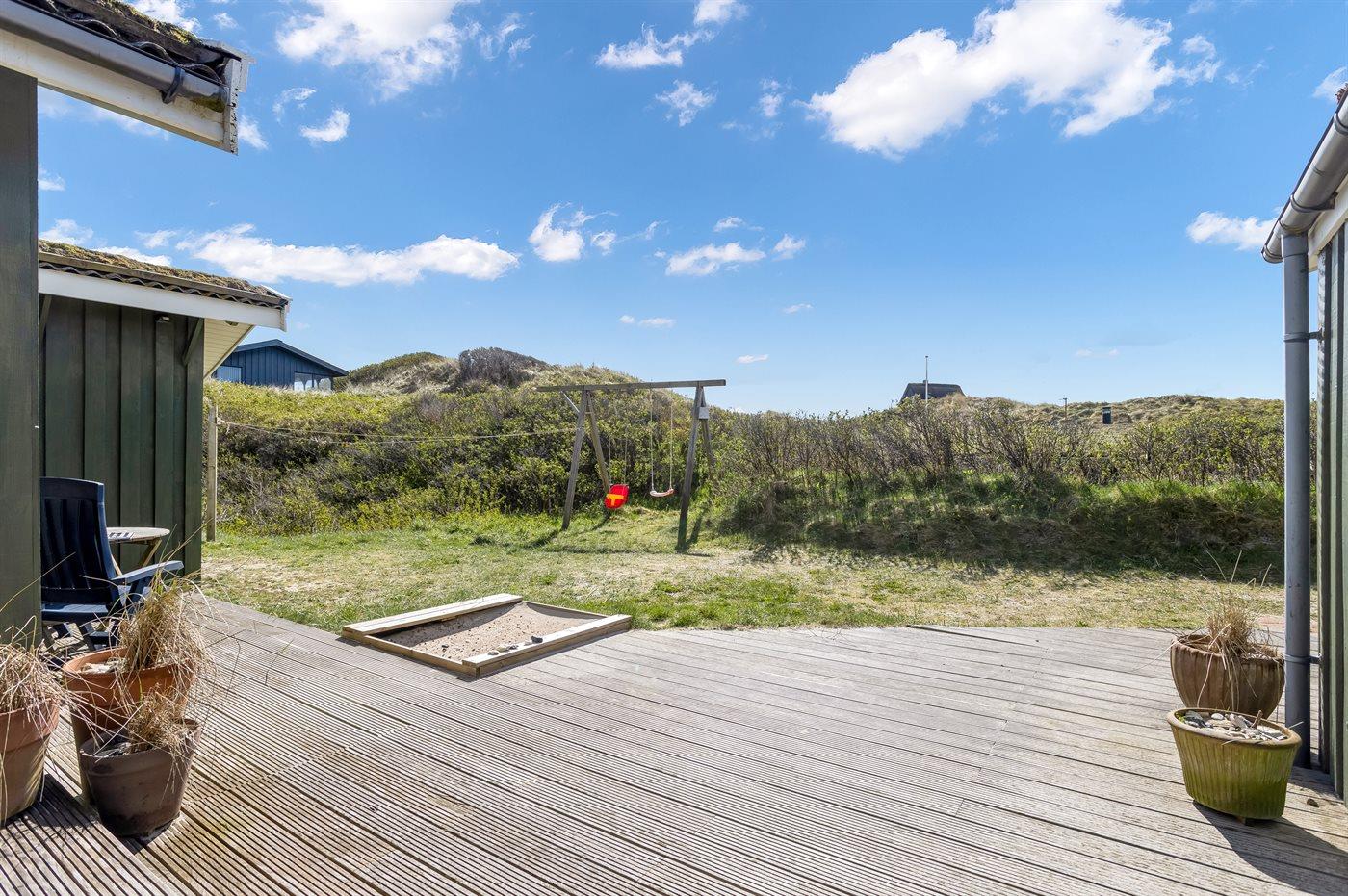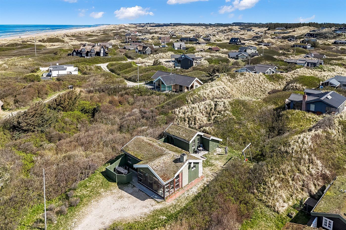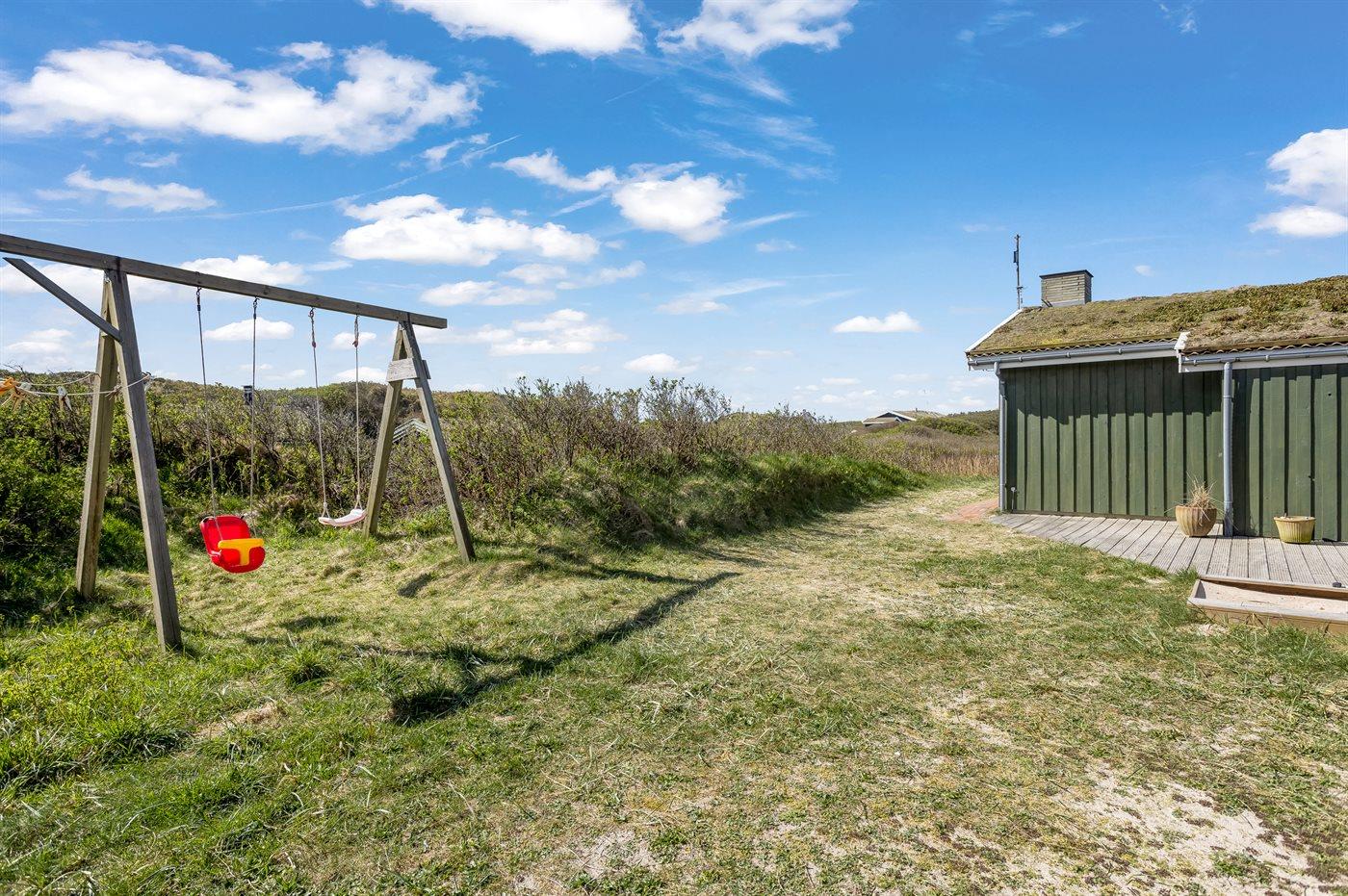 Ferieboligen er beliggende på en 1856 m² stor klitgrund. Der er 150 m til havet. Nærmeste forretning er beliggende i en afstand af 3000 m. Til ferieboligen hører 65 m² terrasseareal. Der er redskabsrum. Gynge. Sandkasse. Parkering ved ferieboligen.