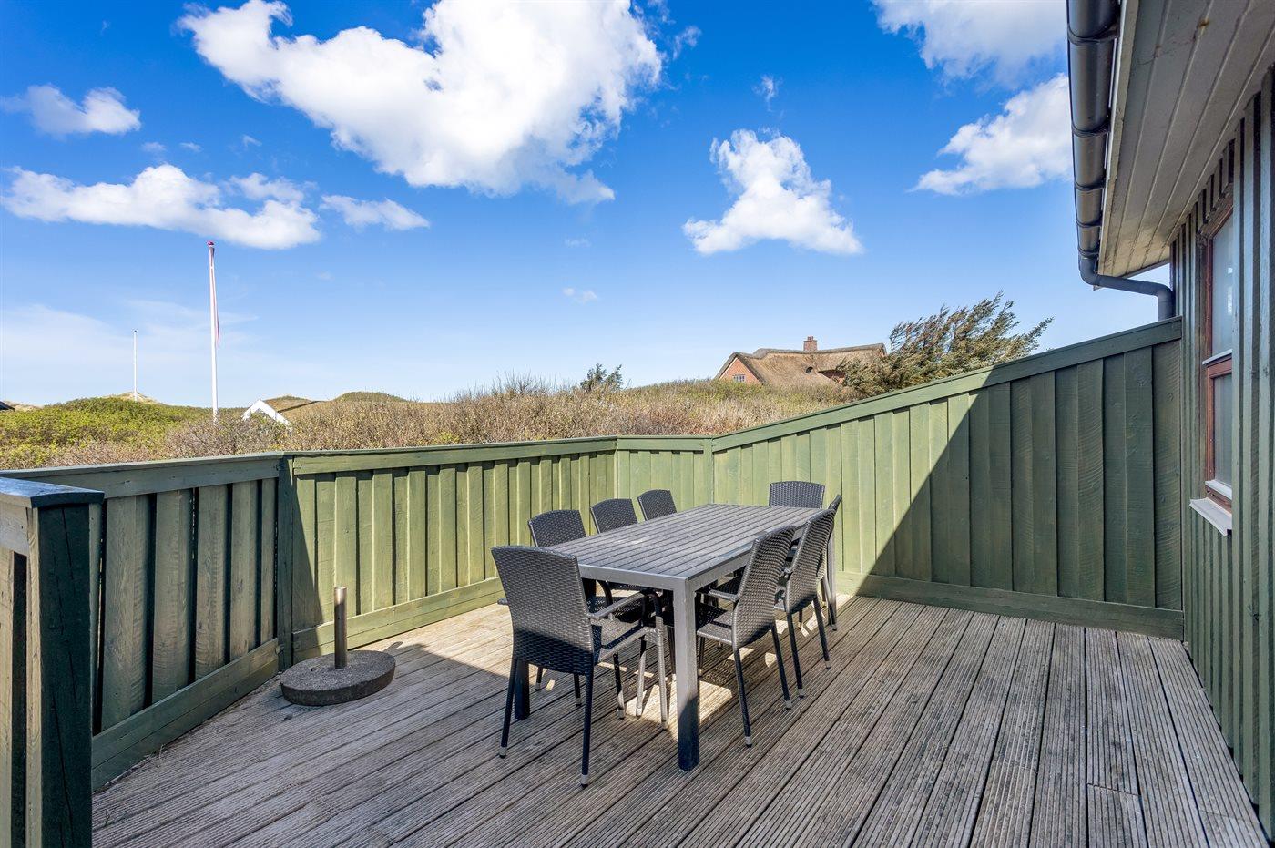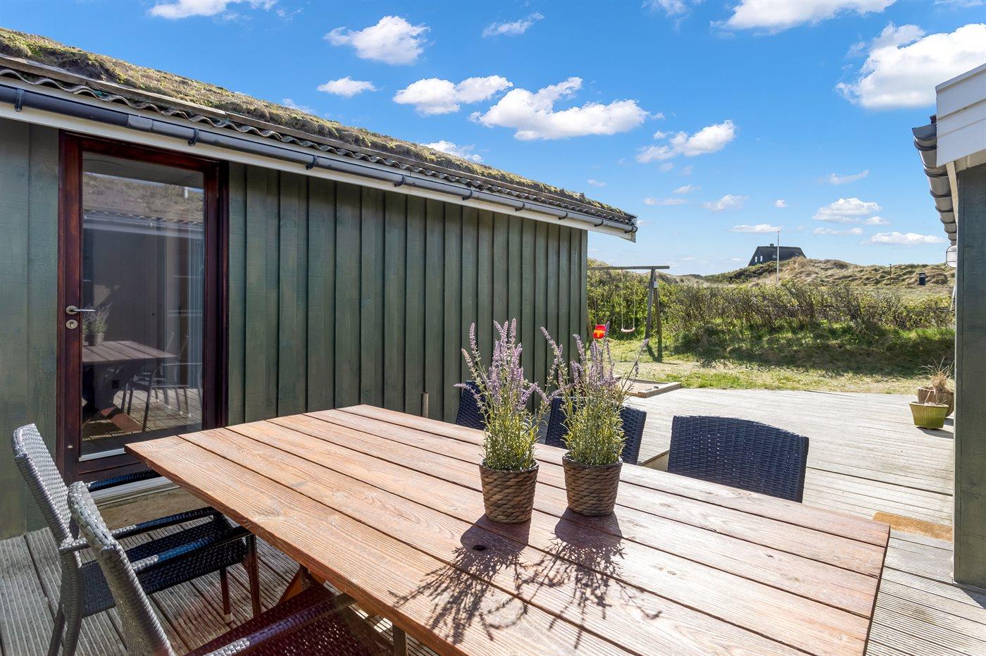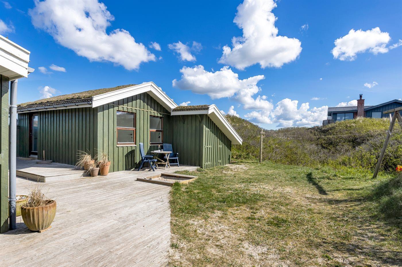 Ferieboligen er beliggende på en 1856 m² stor klitgrund. Der er 150 m til havet. Nærmeste forretning er beliggende i en afstand af 3000 m. Til ferieboligen hører 65 m² terrasseareal. Der er redskabsrum. Gynge. Sandkasse. Parkering ved ferieboligen.