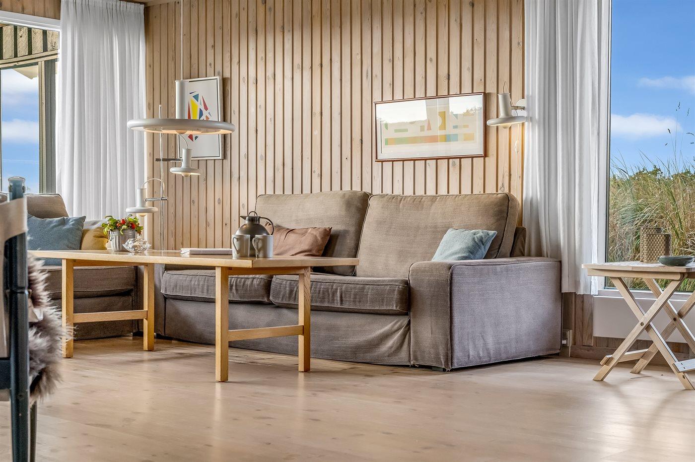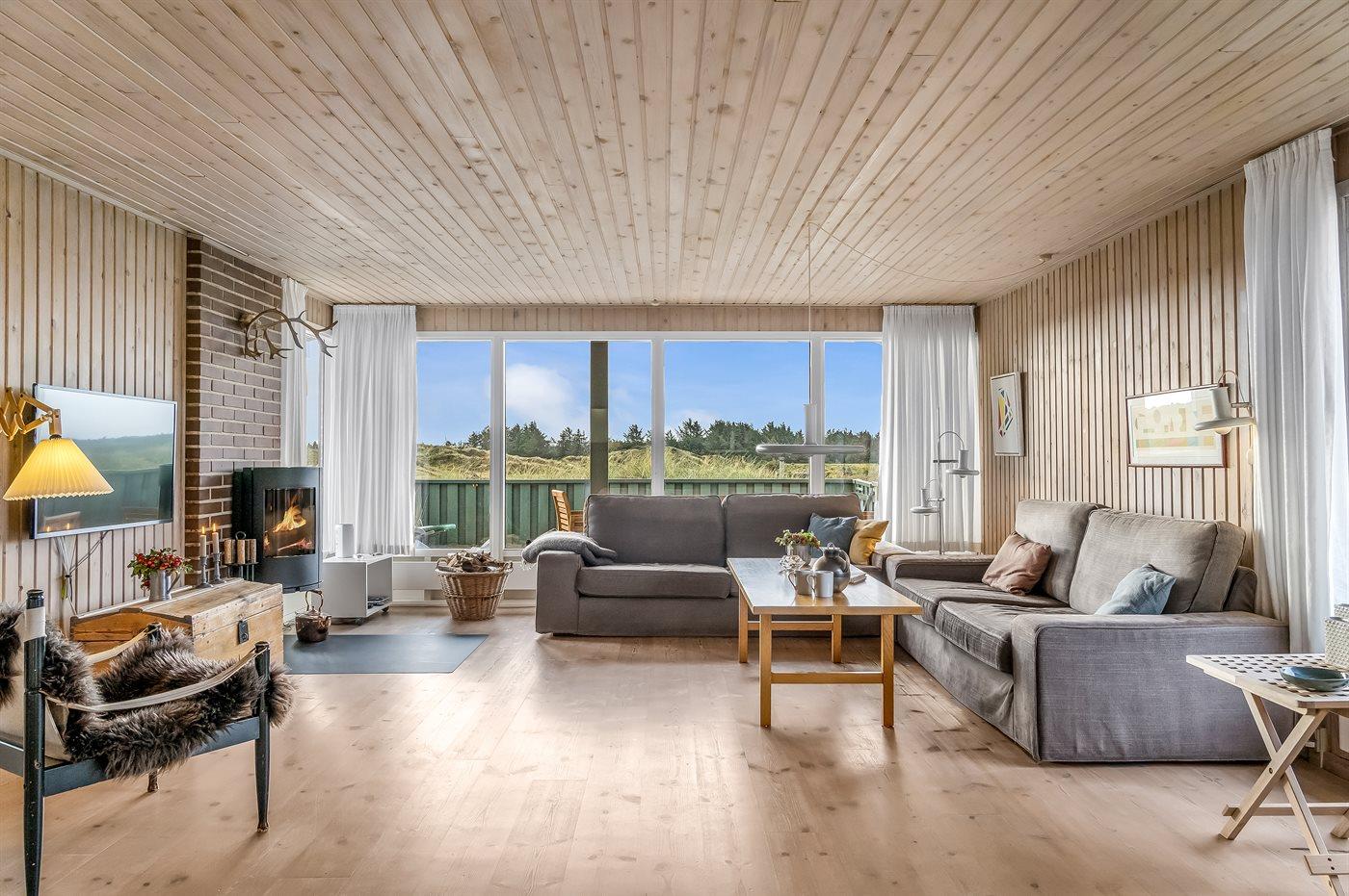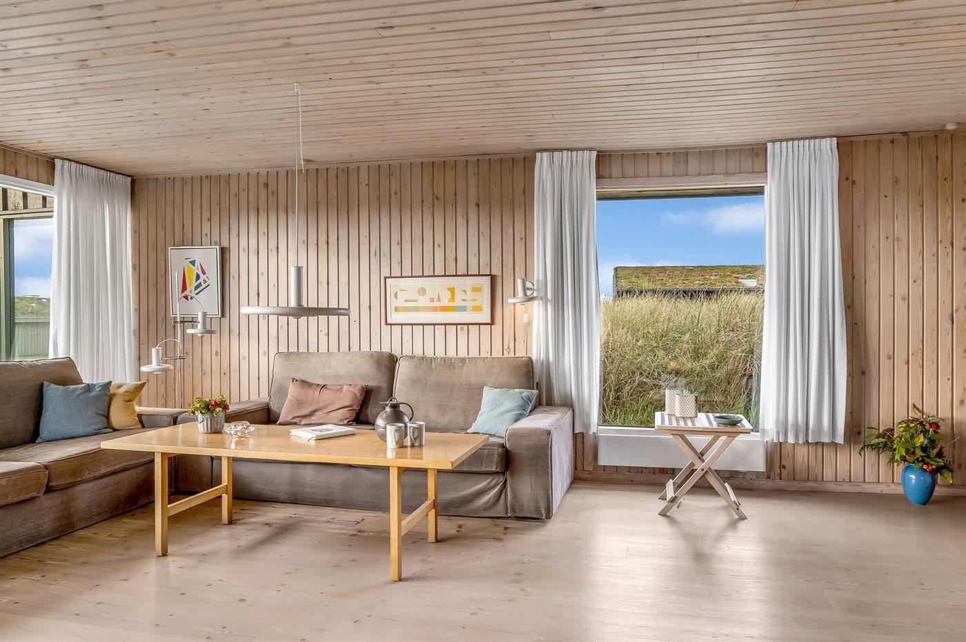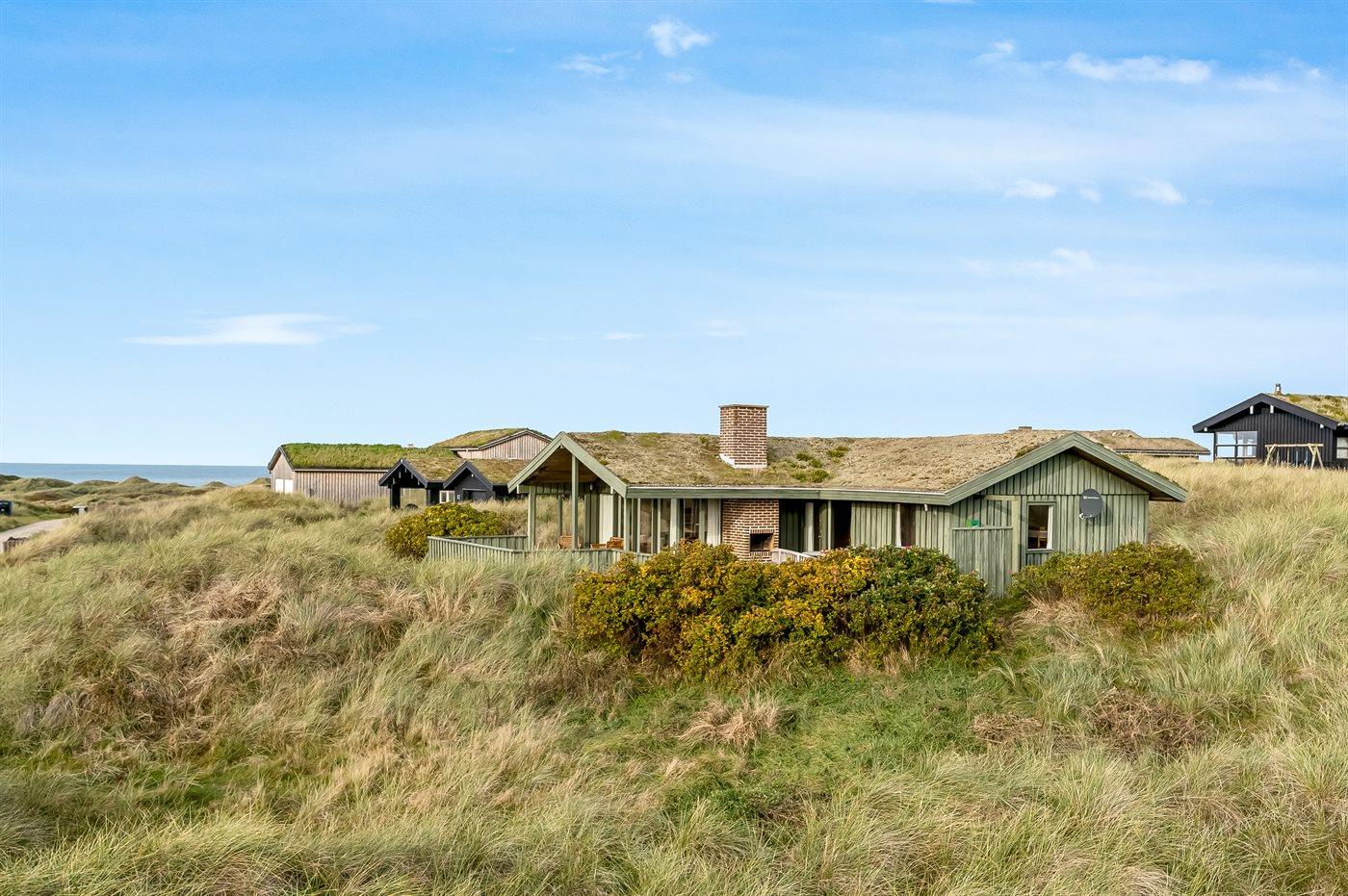 På en smuk, kuperet grund i et roligt og naturskønt område med mange gangstier ligger dette veludstyrede sommerhus. Fra såvel hus som grund er der udsigt over Vesterhavet.