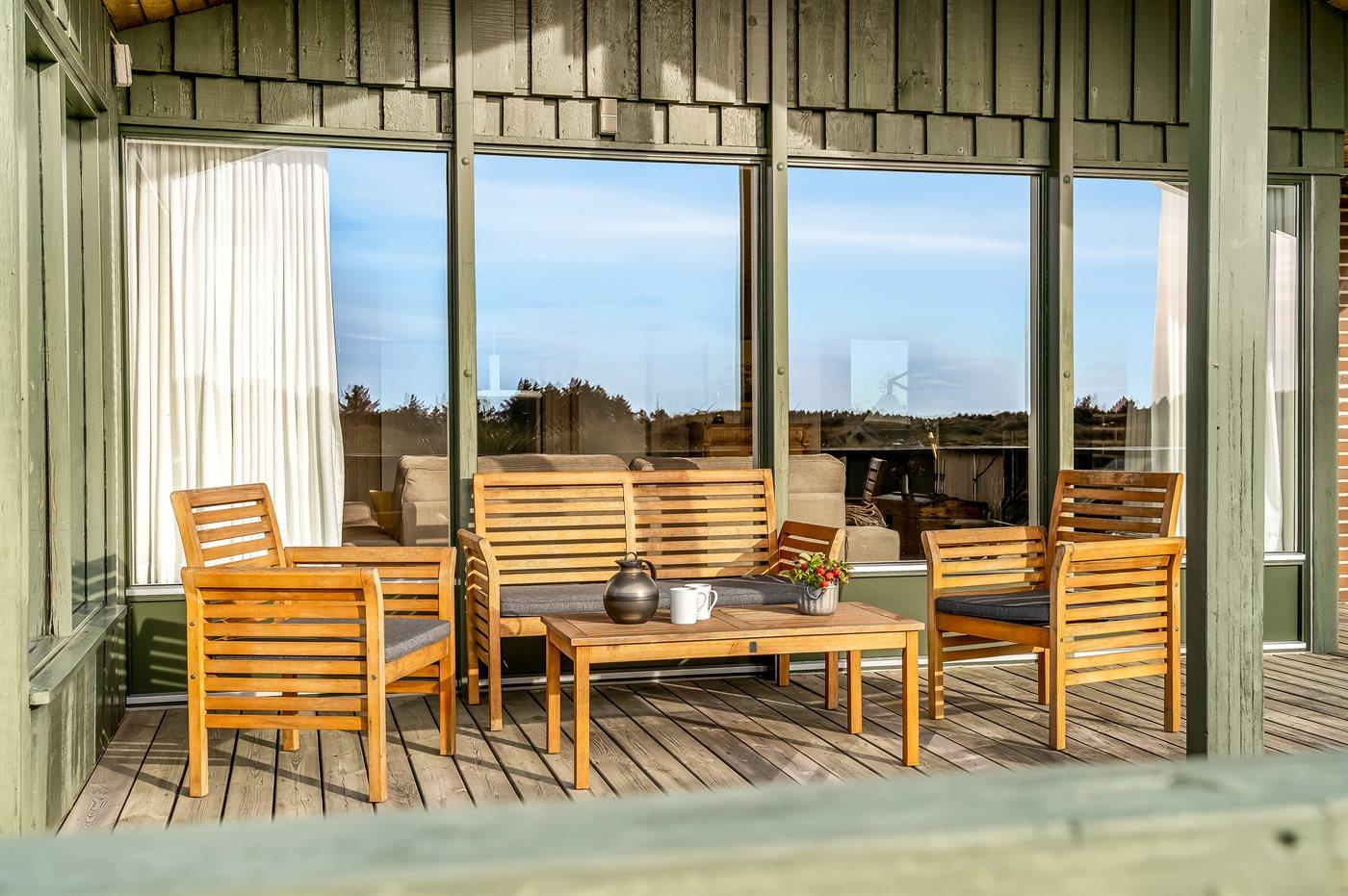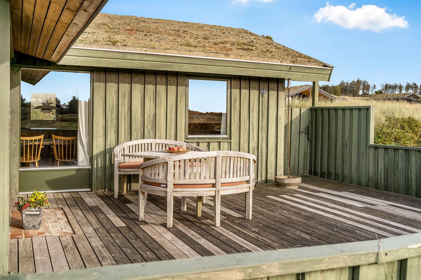 Ferieboligen er beliggende på en 1660 m² stor klitgrund. Der er 480 m til havet. Nærmeste forretning er beliggende i en afstand af 4000 m. Til ferieboligen hører 100 m² terrasseareal. Desuden er der 15 m² overdækket terrasse. Der er redskabsrum. På lune aftener sørger en udendørs pejs for hyggelig stemning. Der er installeret stik til opladning af elbil. Parkering ved ferieboligen.