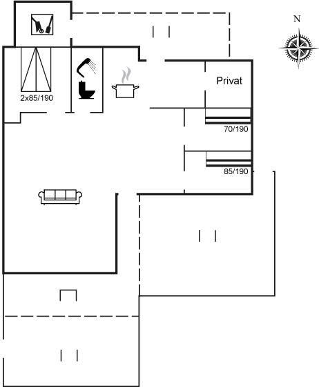 Der er i alt 3 soveværelser. Sovepladserne fordeler sig på: 2 sovepladser i dobbeltseng. 4 sovepladser i køjesenge.