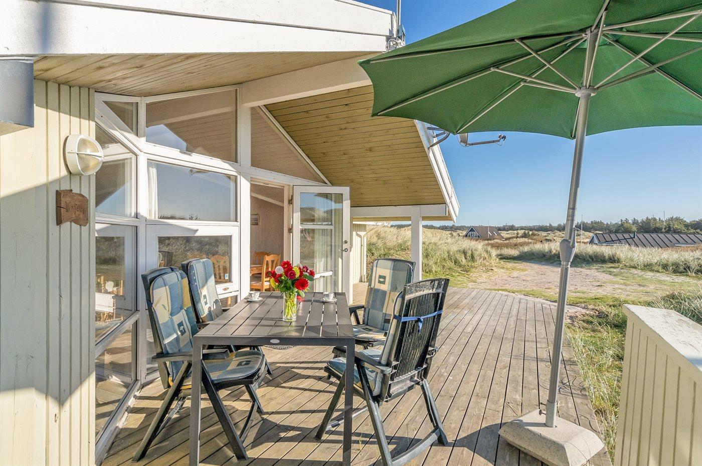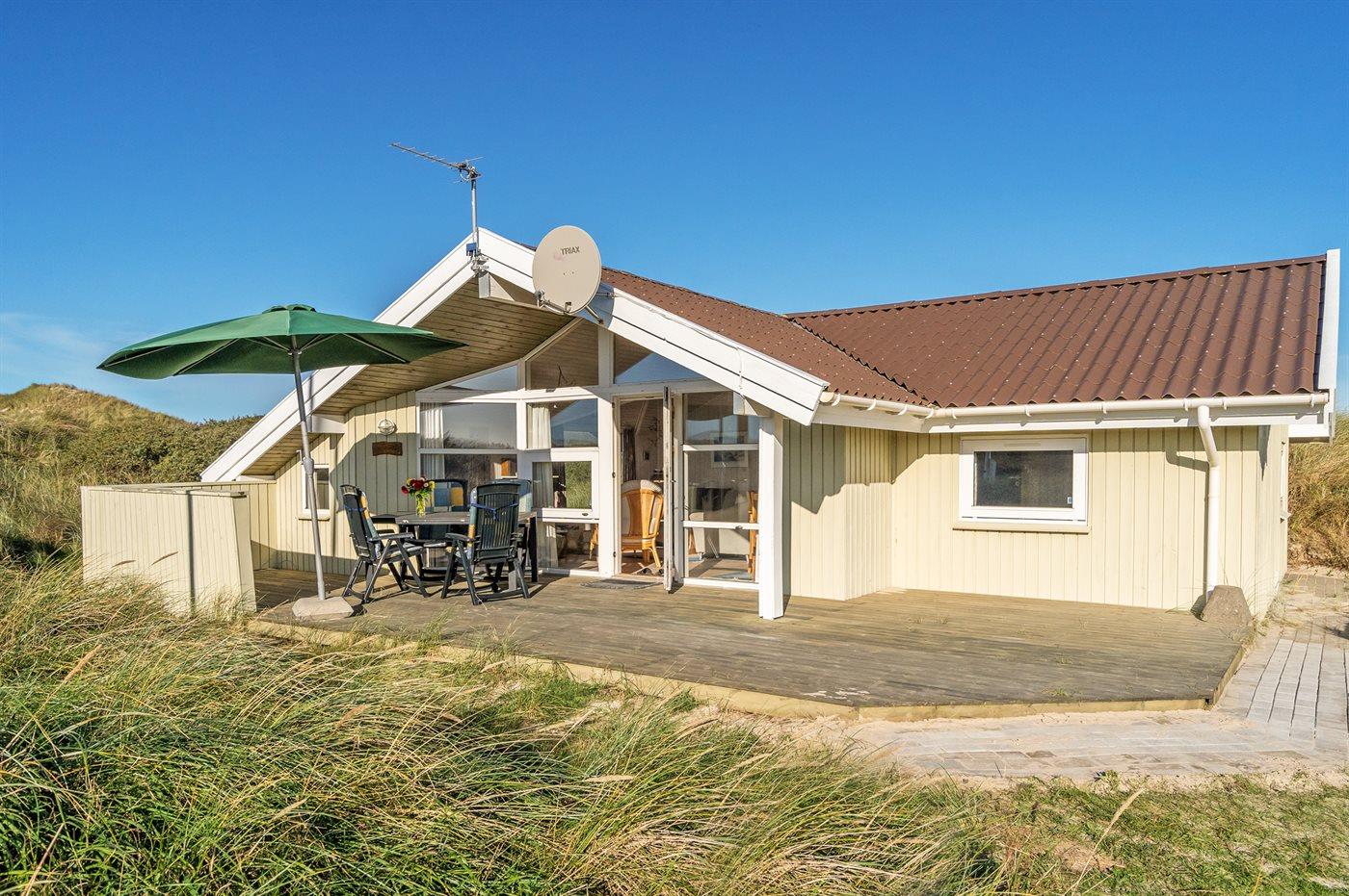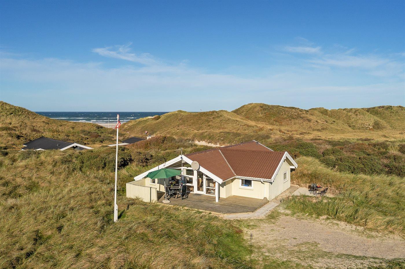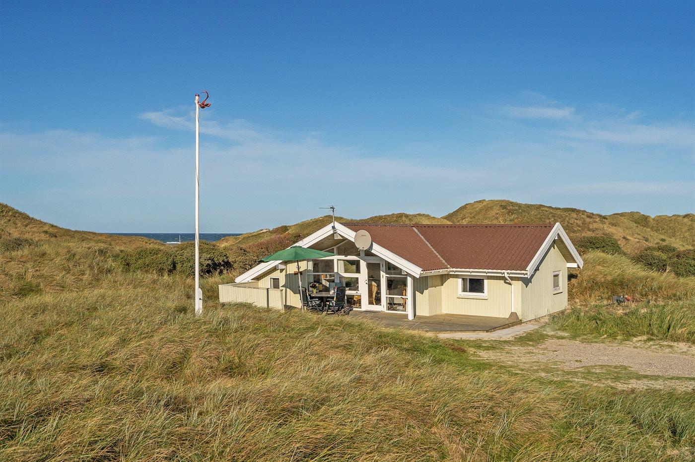 Særdeles velholdt sommerhus i træ fra 1993, beliggende på en stor grund kun 150 m fra den pragtfulde, hvide sandstrand ved Vesterhavet. Fra toppen af grunden er der en fantastisk udsigt til vandet og klitterne.