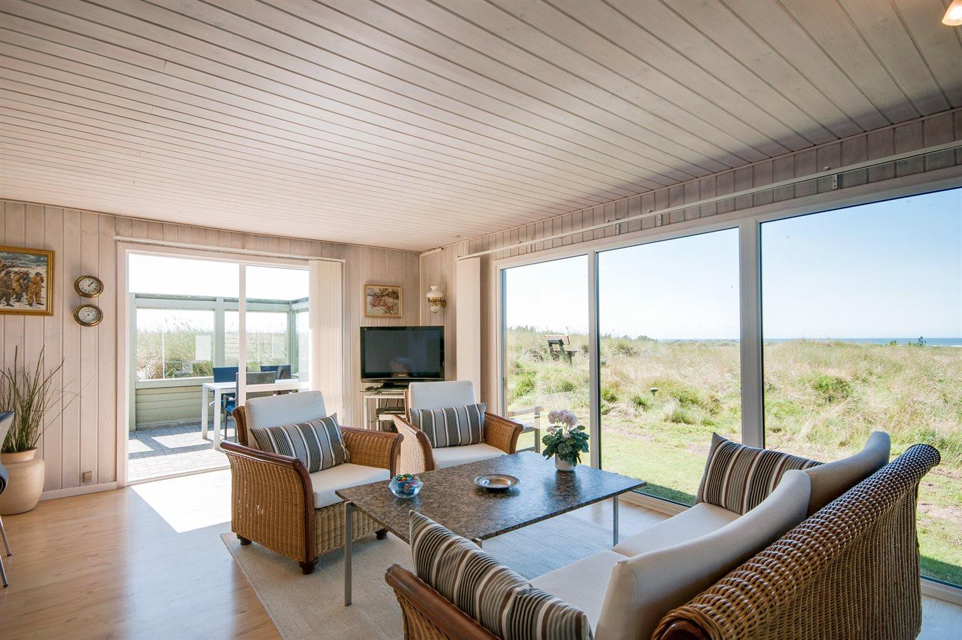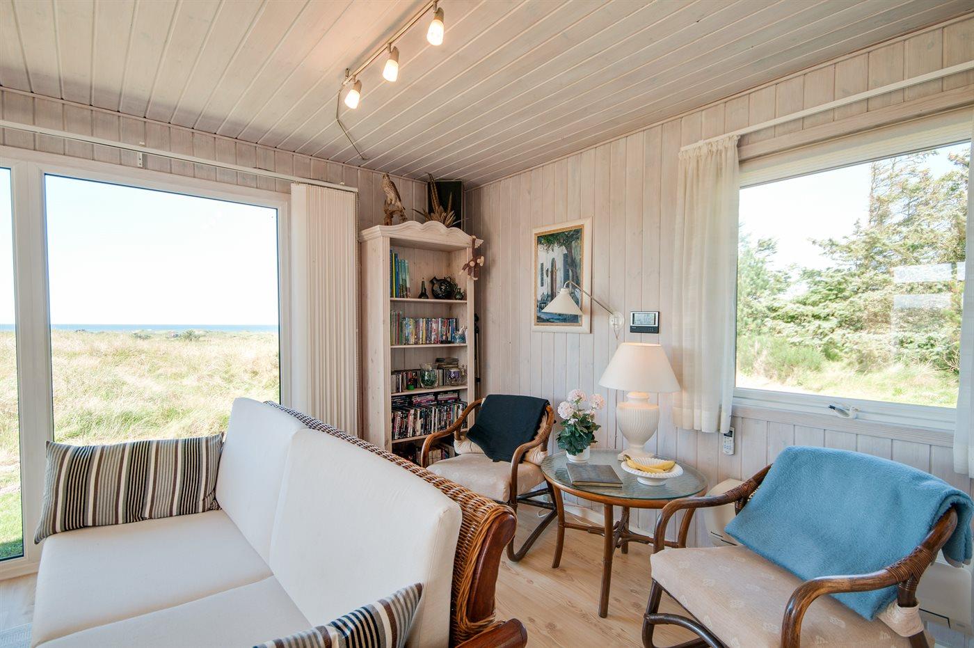 Højt beliggende med en storslået udsigt over området og Vesterhavet ligger dette skønne og velholdte sommerhus, helt ugenert for enden af blind vej, i et roligt og naturskønt område tæt på naturområdet "Lille Norge" med sti direkte til stranden. Til huset hører et ekstra opholdsrum/legerum i anneksbygning.