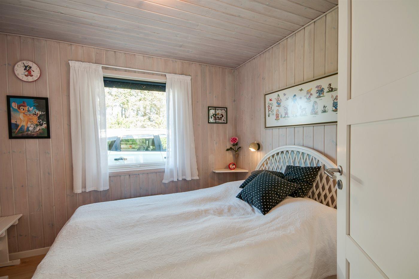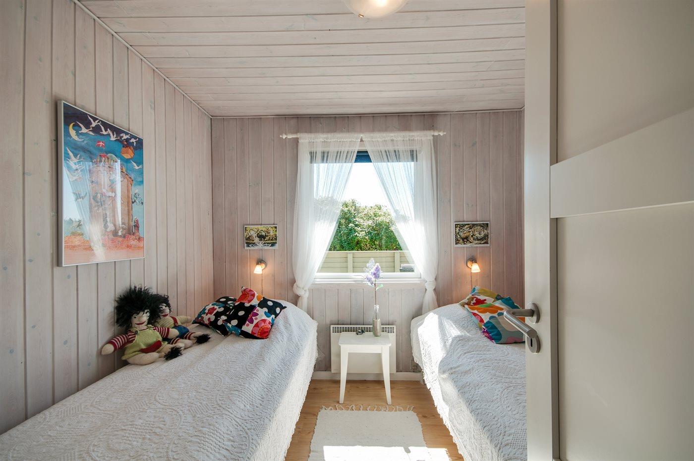 Der er i alt 3 soveværelser. Sovepladserne fordeler sig på: 2 sovepladser i dobbeltseng. 4 sovepladser i enkeltsenge. Derudover er der 1 stk. barneseng.