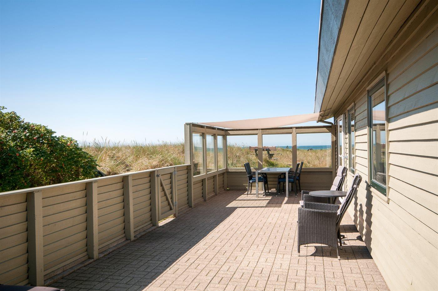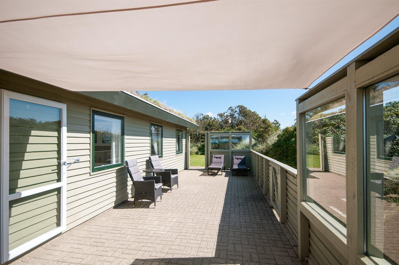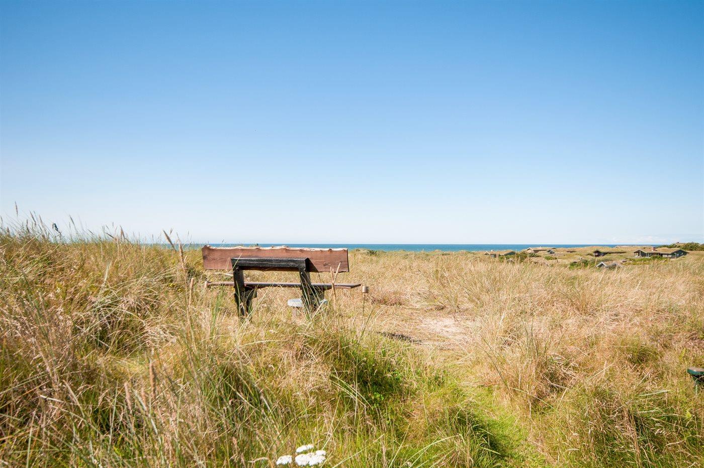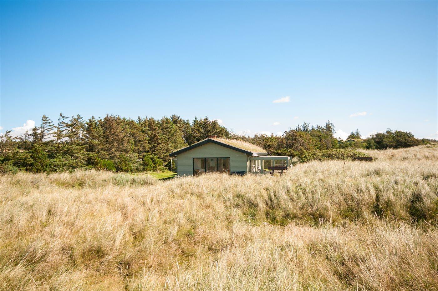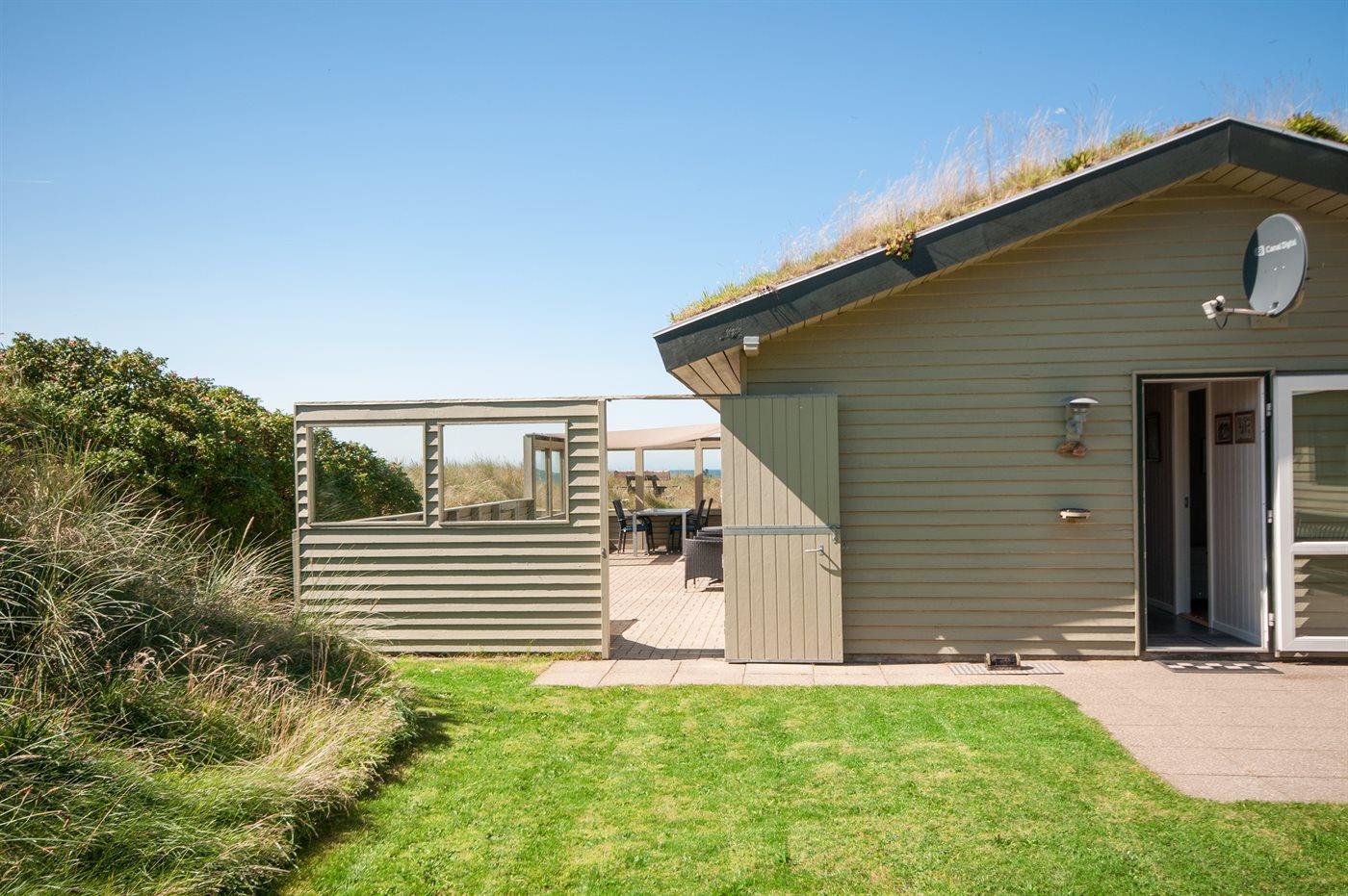 Ferieboligen er beliggende på en 4300 m² stor klitgrund. Der er 400 m til havet. Nærmeste forretning er beliggende i en afstand af 2500 m. Til ferieboligen hører 30 m² terrasseareal. Heraf i alt 10 m² lukket terrasse. Der er redskabsrum. Grill til rådighed. Solsejl. Parkering ved ferieboligen.