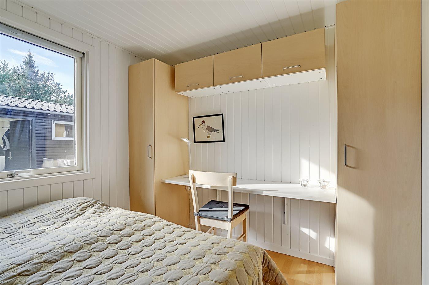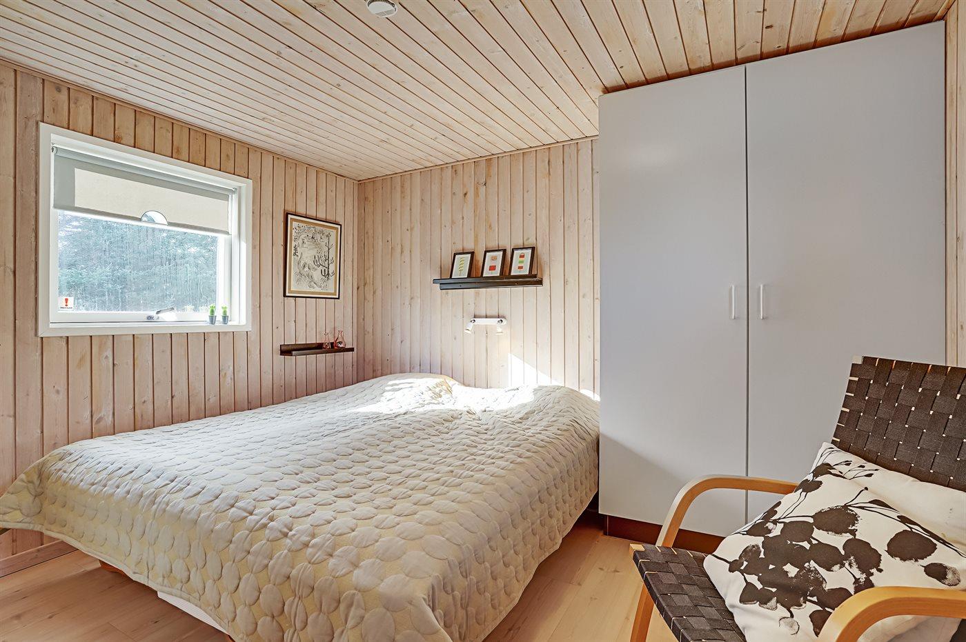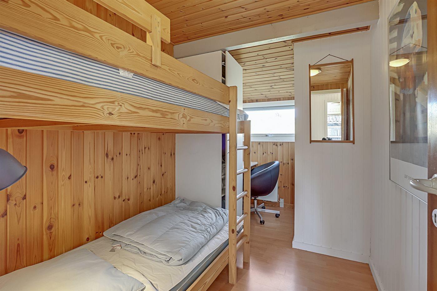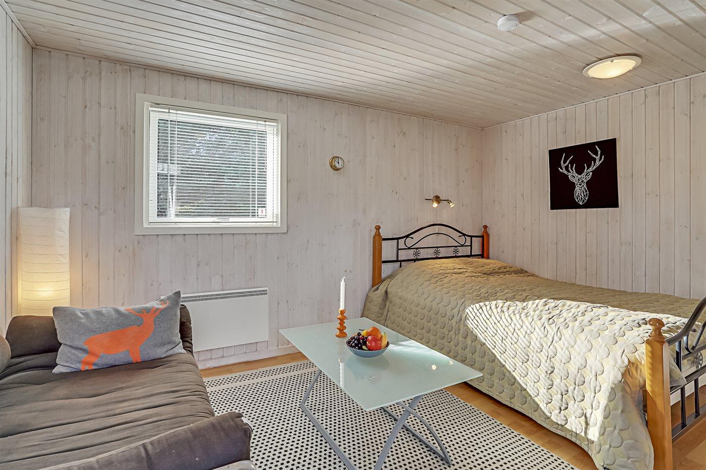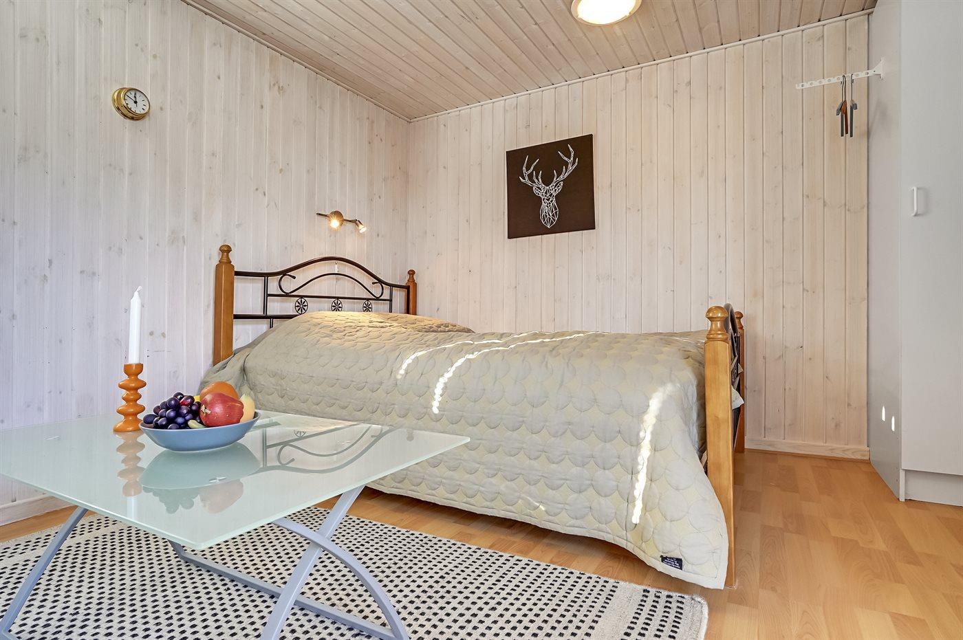 Der er i alt 4 soveværelser. Sovepladserne fordeler sig på: 4 sovepladser i dobbeltsenge. 2 sovepladser i enkeltsenge. 2 sovepladser i køjeseng. 4 af disse sovepladser fordeler sig på 2 annekser. Derudover er der 1 stk. barneseng.