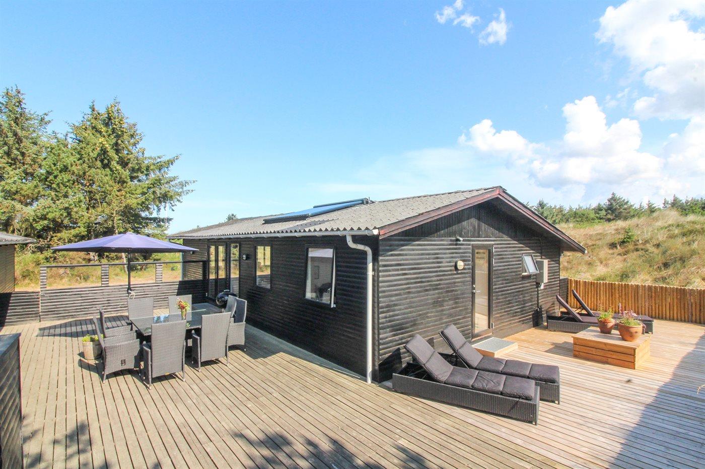 Hyggeligt og rummeligt sommerhus nær Vesterhavet med spa, sauna og stor lukket terrasse.
