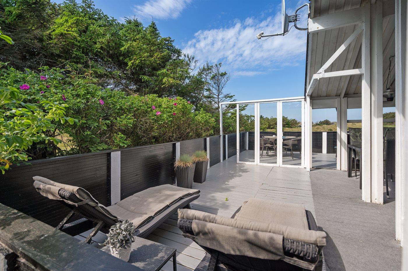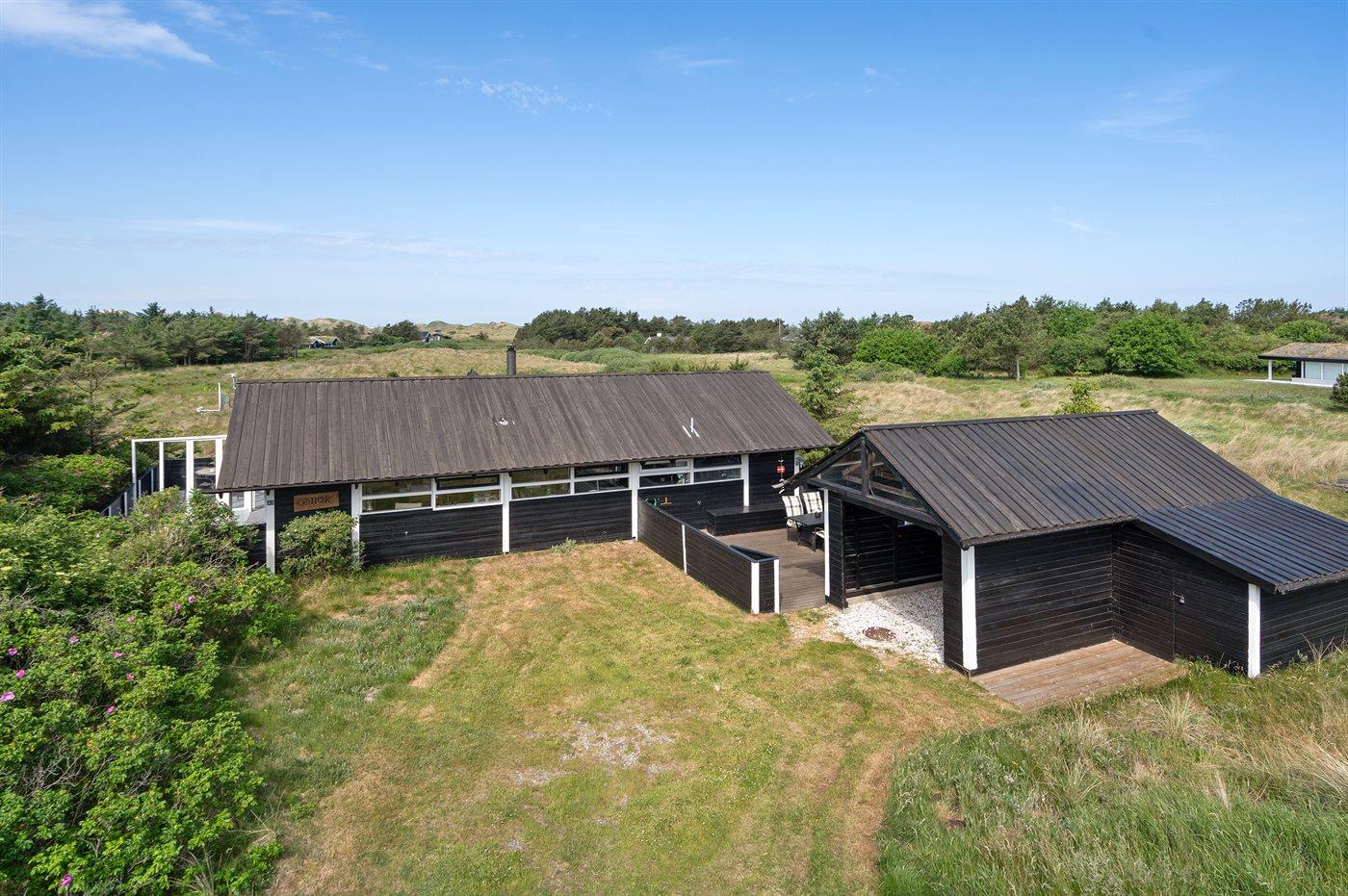 Ferieboligen er beliggende på en 2800 m² stor naturgrund. Der er 800 m til havet. Nærmeste forretning er beliggende i en afstand af 1000 m. Til ferieboligen hører 50 m² terrasseareal. Desuden er der 15 m² overdækket terrasse. Parasol forefindes. Der er redskabsrum. Sandkasse. Grill til rådighed. Der er carport til rådighed. Parkering ved ferieboligen.