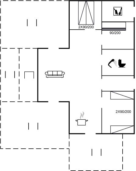 Der er i alt 3 soveværelser. Sovepladserne fordeler sig på: 2 sovepladser i dobbeltseng. 2 sovepladser i enkeltsenge. 2 sovepladser i køjeseng. Derudover er der 1 stk. barneseng.
