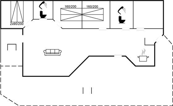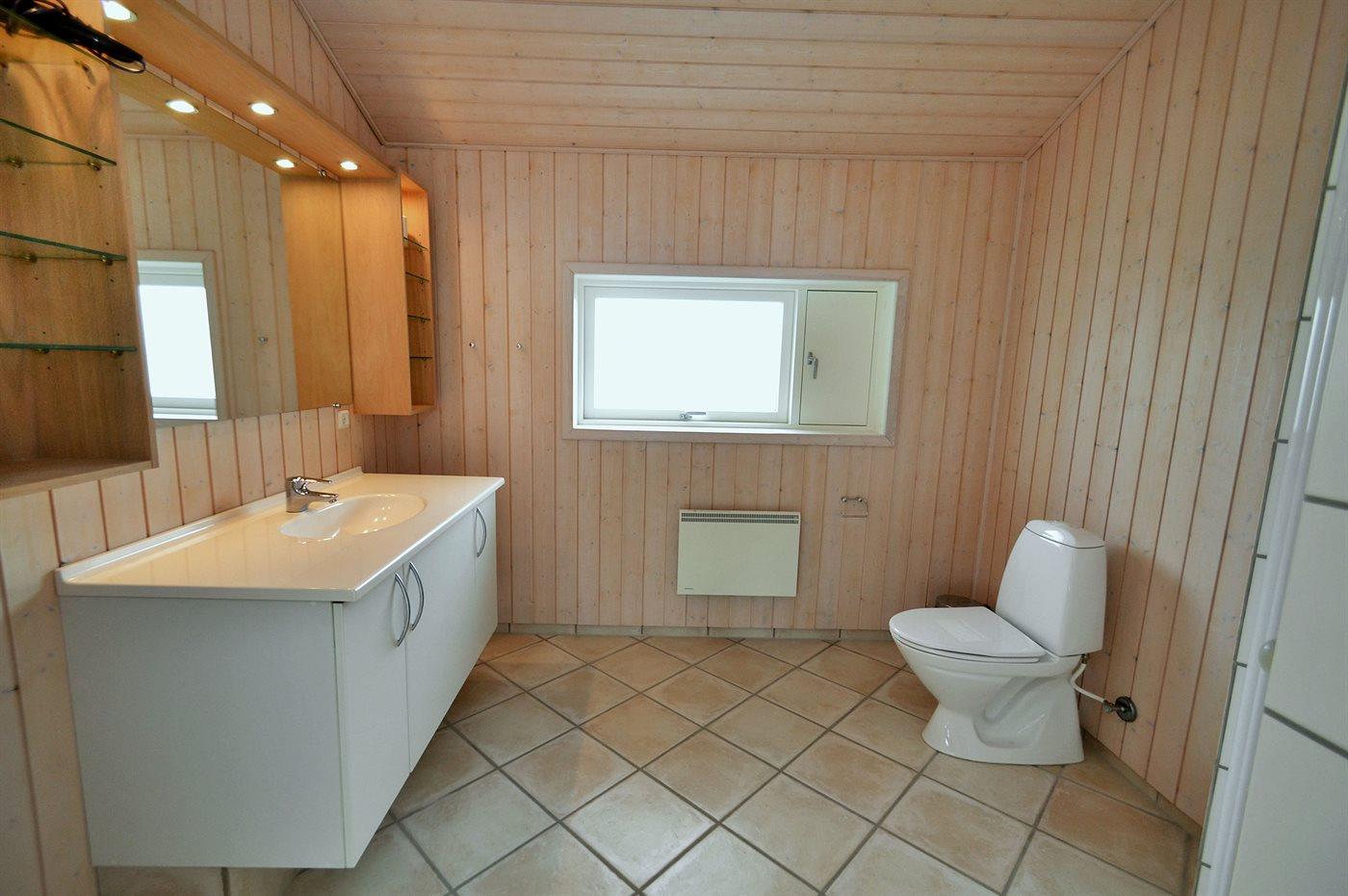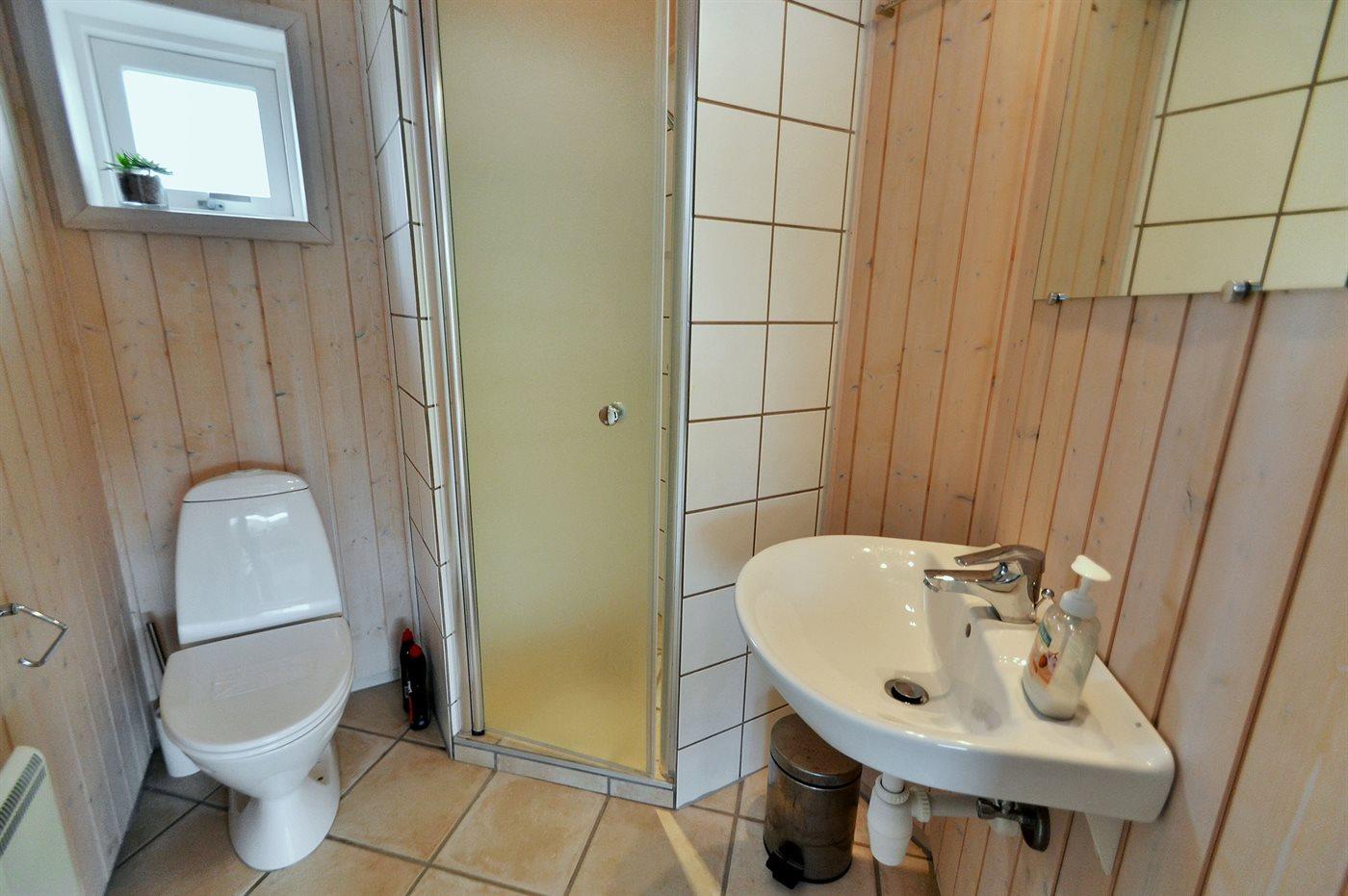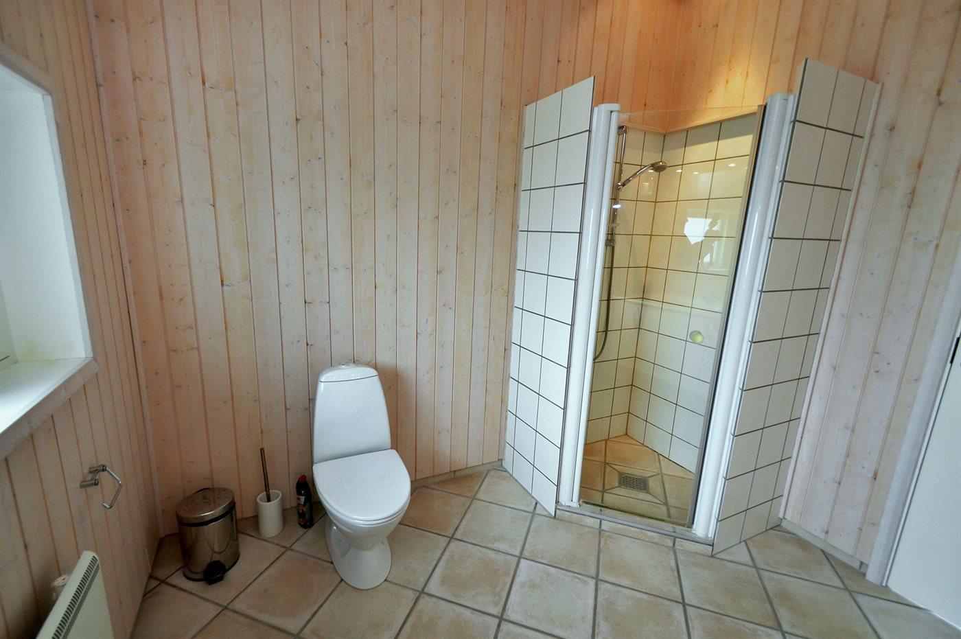 Der er 2 badeværelser med bruseniche og 2 toiletter. Der er gulvvarme på 1 badeværelse.