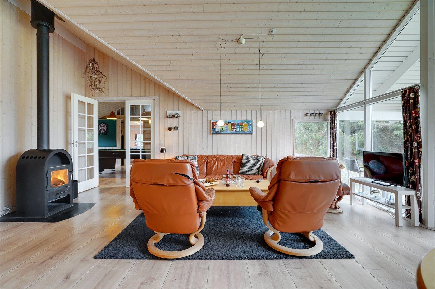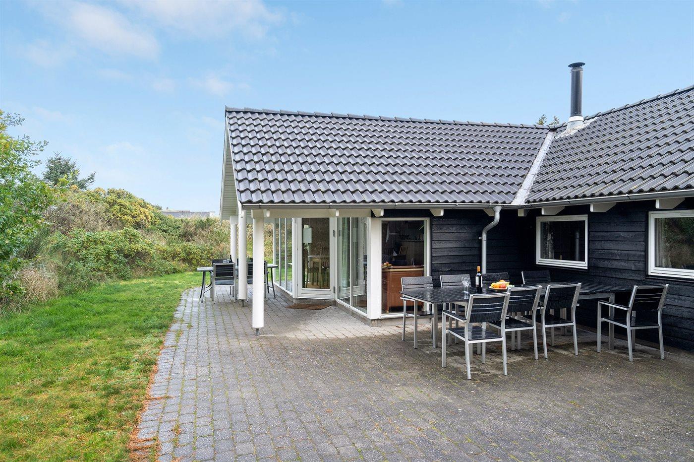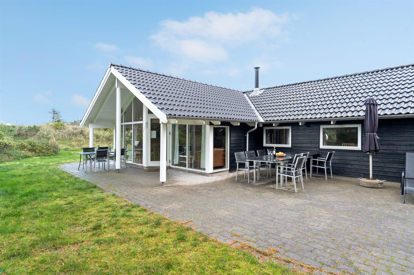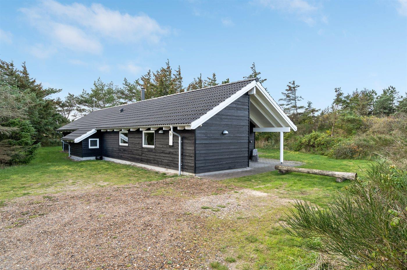 Dejligt sommerhus med aktivitetsrum beliggende på en dejlig lukket naturgrund i et af de naturskønneste områder langs den jyske vestkyst mellem Blokhus og Løkken. Bemærk: Huset er indrettet med hems, hvor 2 af sovepladserne befinder sig.