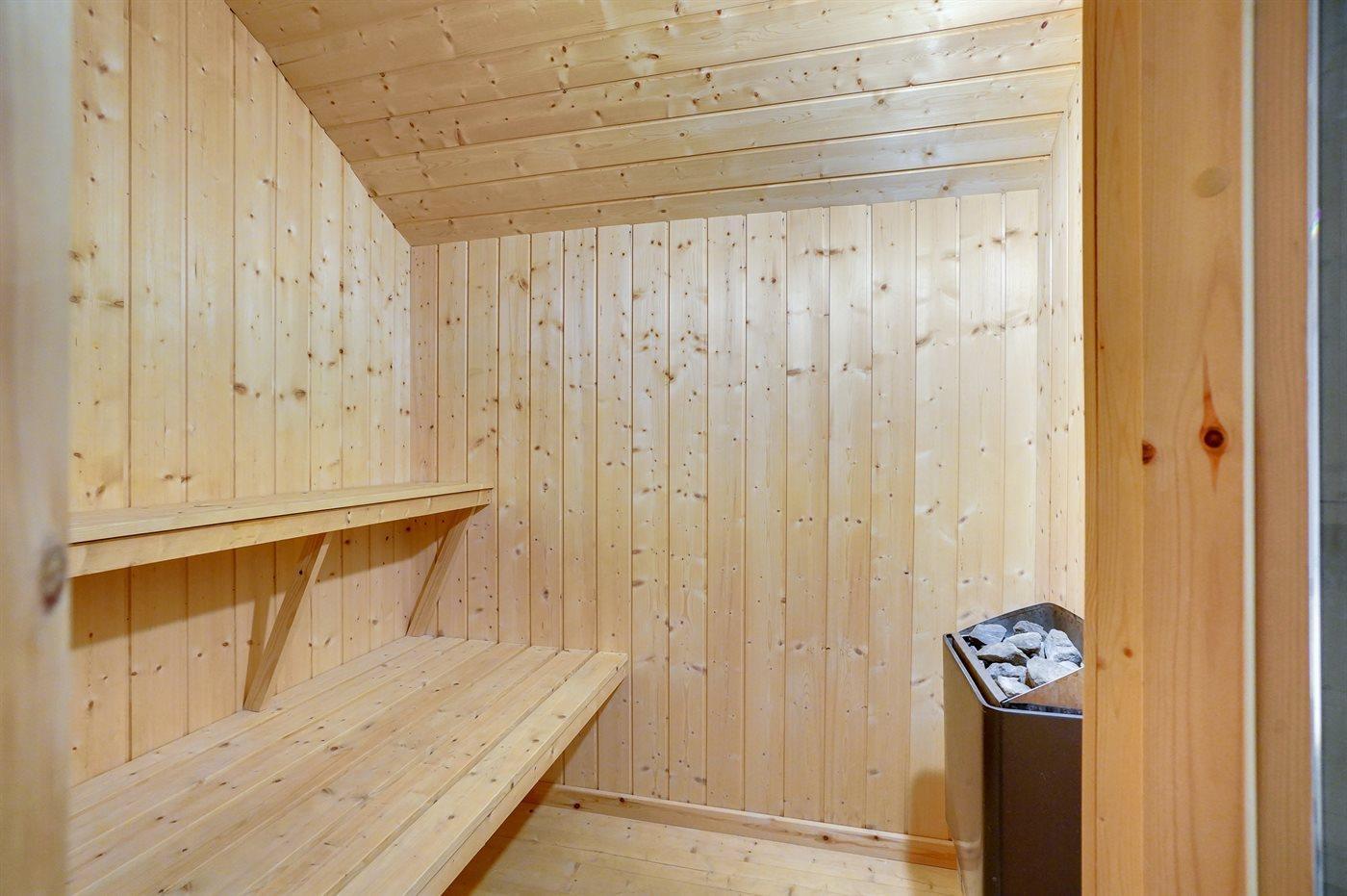 Der er 2 badeværelser med bruseniche og 2 toiletter. Der er gulvvarme på 2 badeværelser. I saunaen er der mulighed for afslapning.