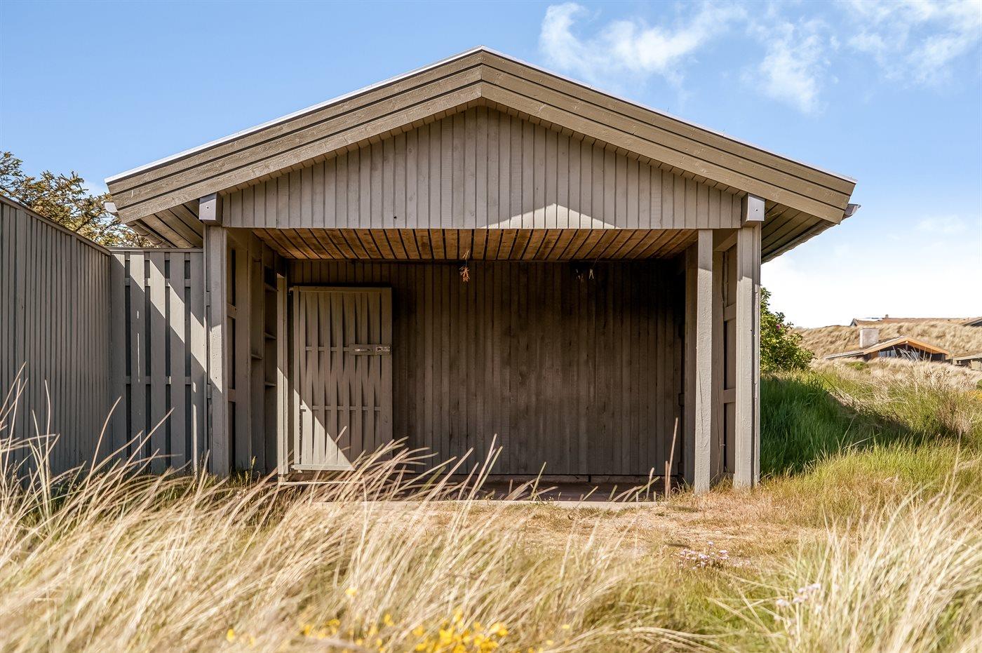 Ferieboligen er beliggende på en 3185 m² stor klitgrund. Der er 350 m til havet. Nærmeste forretning er beliggende i en afstand af 2500 m. Til ferieboligen hører 86 m² terrasseareal. Der er redskabsrum. Sandkasse. Der er carport til rådighed. Parkering ved ferieboligen.