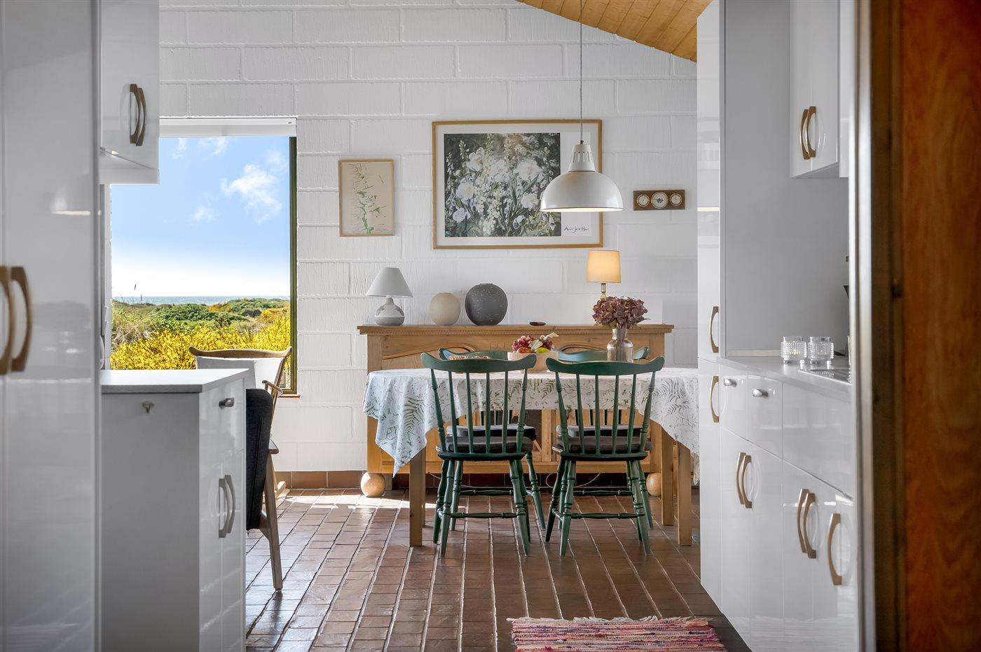 Ældre sommerhus med en fantastisk beliggenhed på en meget stor kuperet grund med skøn udsigt til havet og det omkringliggende klitlandskab fra såvel hus som grund. Huset ligger i rolige og naturskønne omgivelser lige op til et fredet naturareal, på en lukket vej, med god afstand til de nærmeste naboer.