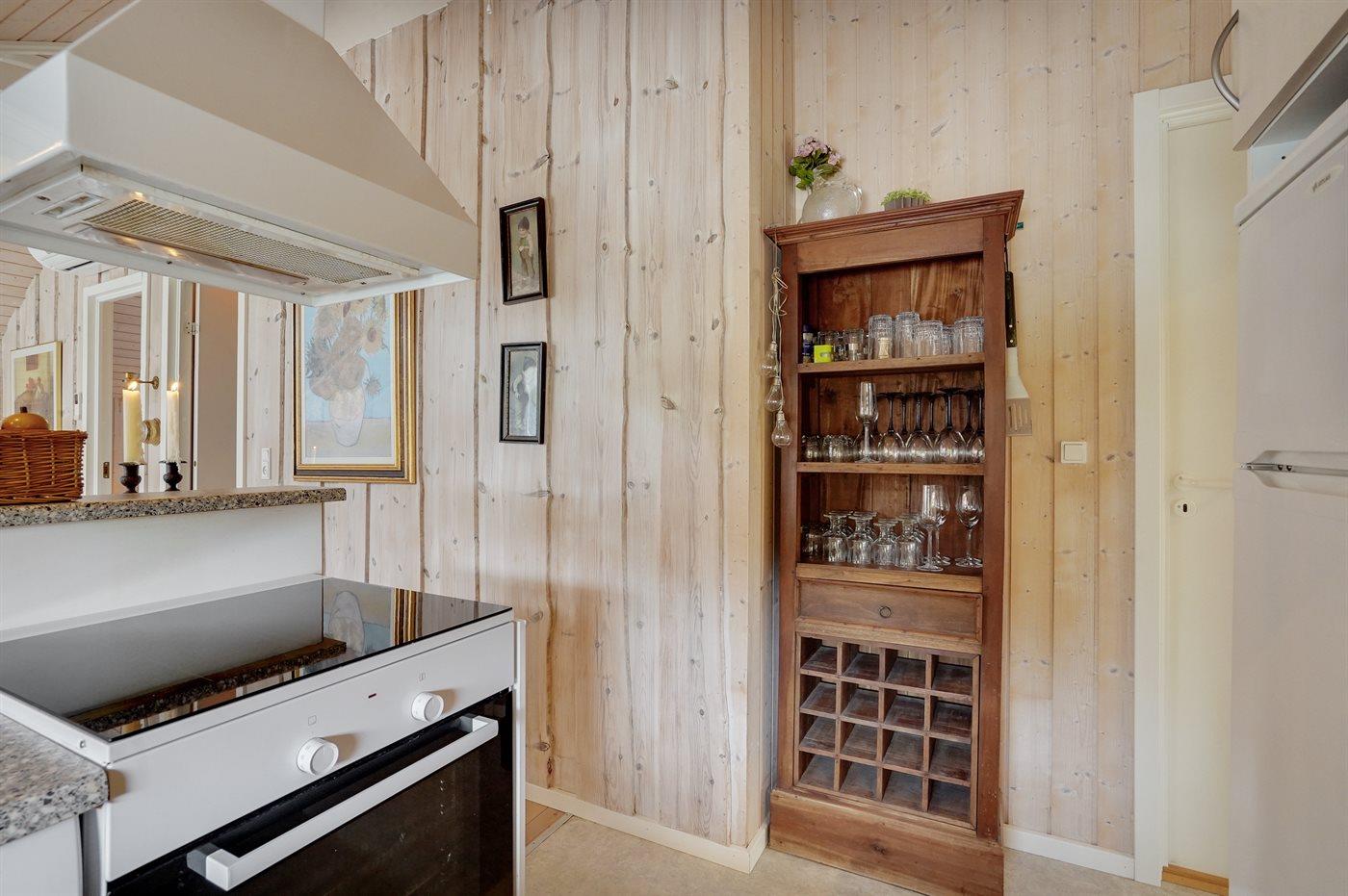Køkkenet er udstyret med 1 køleskab. Der er 4 induktionskogeplader, varmluftovn, mikrobølgeovn samt opvaskemaskine.