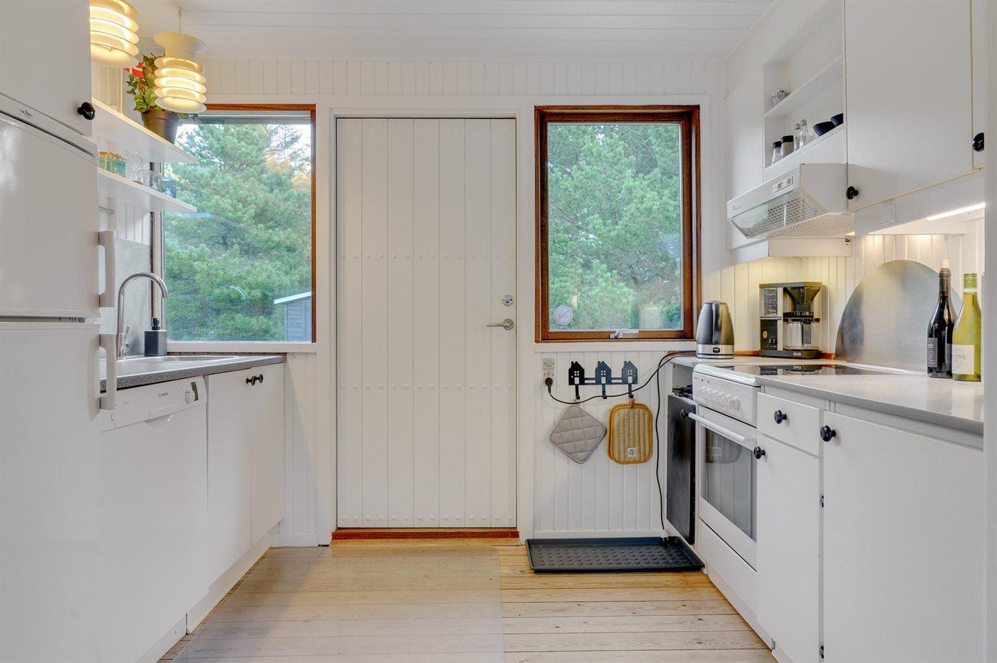 Køkkenet er udstyret med 1 køleskab. Der er 4 keramiske kogeplader, varmluftovn, mikrobølgeovn samt opvaskemaskine.